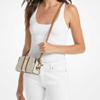 Petite taille, style grandiose : le sac Becca rehausse n'importe quel look avec élégance. Conçu en toile à imprimé logo avec des rayures centrales, ce petit sac souple présente des détails modernes comme une bandoulière et une fermeture zippée pour garder vos essentiels en sécurité. Portez-le avec les looks jet-set de la saison.