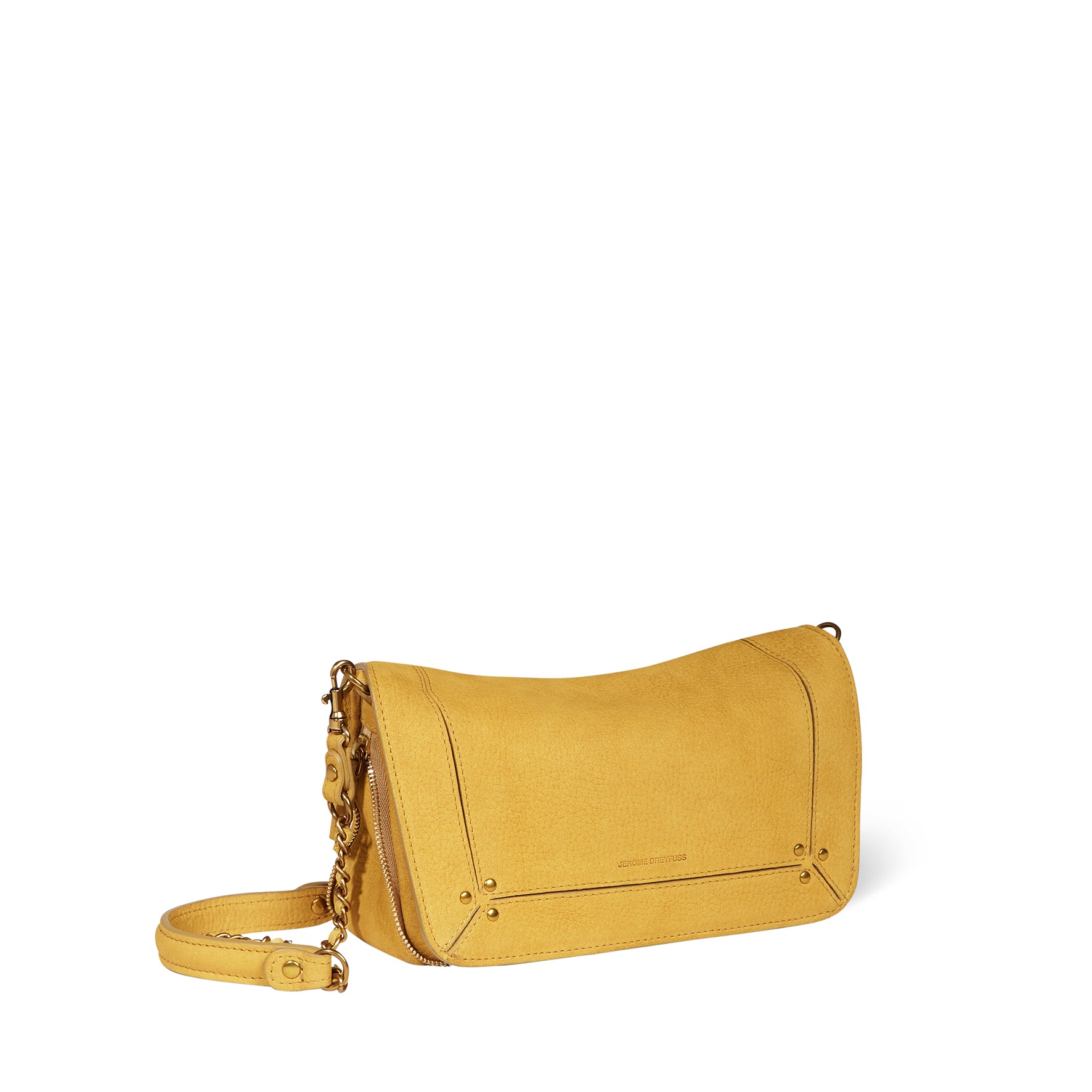 Sac bandoulière, porté à l’épaule ou en croisé. Bandoulière amovible en chaîne tressée de cuir. Fermeture par un rabat en cuir aimanté.