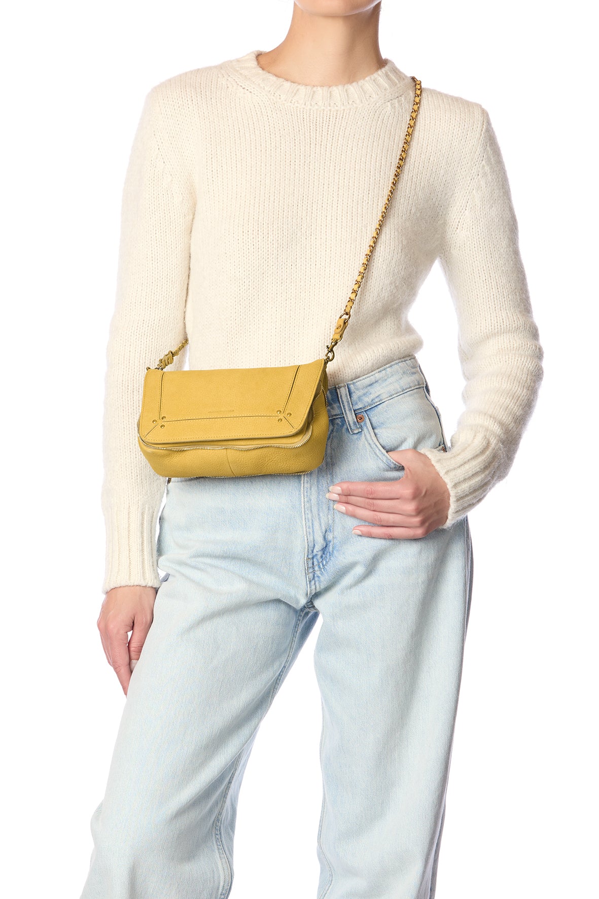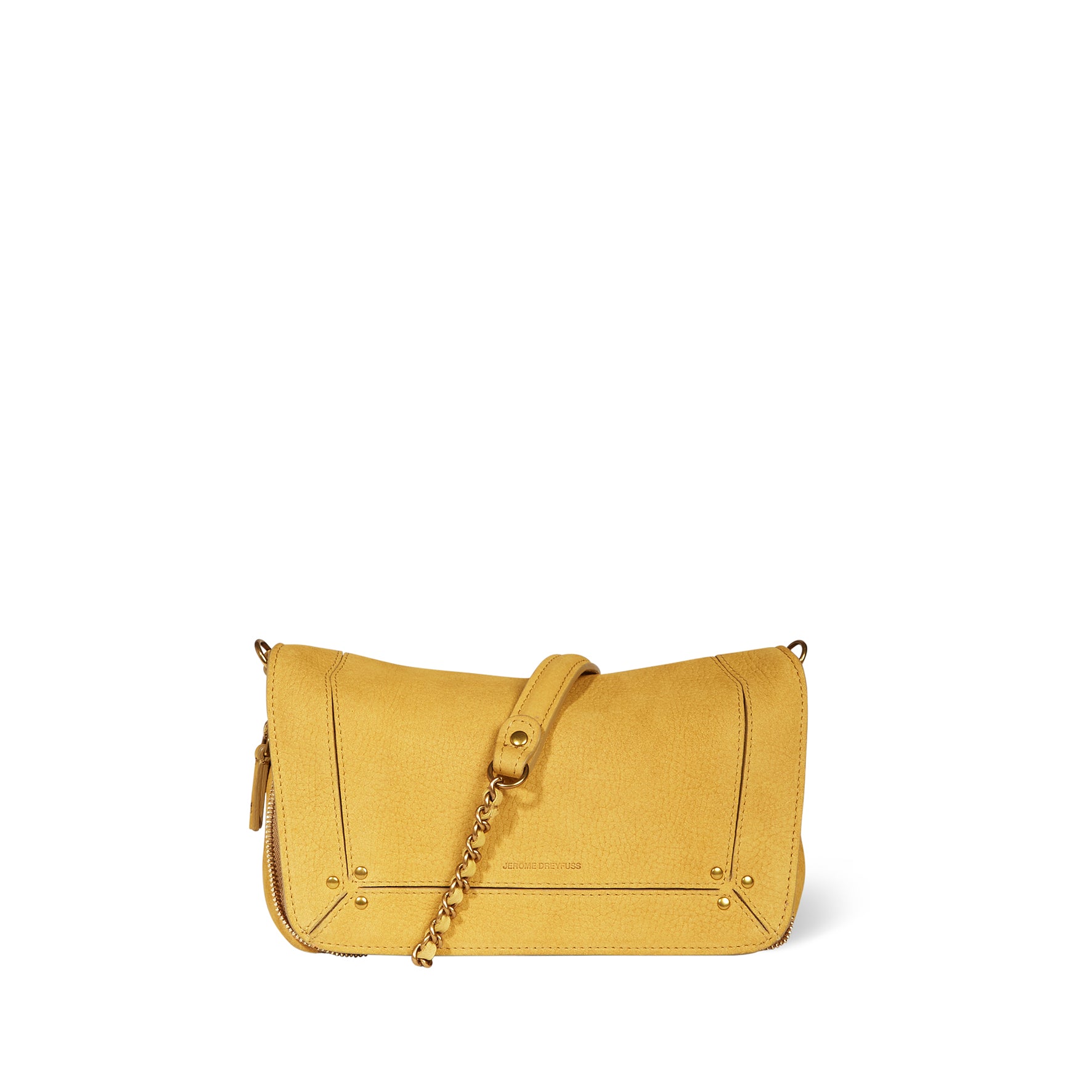 Une bandoulière amovible en chaîne tressée de cuir mesurant 105 cm.
