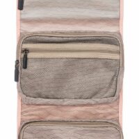 • Dans le compartiment principal 1 compartiment zippé transparent, 2 compartiments zippés, 1 compartiment zippé en filet et 1 crochet
