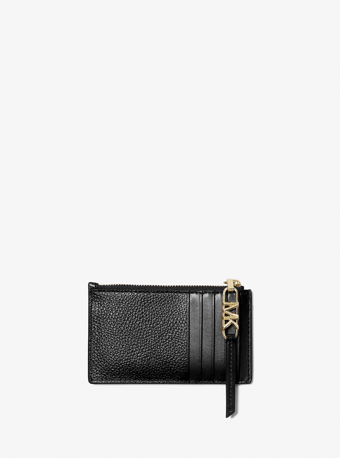 Ce modèle fin est une solution de rechange élégante aux étuis à cartes traditionnels. Doté de notre matériel Empire pour un soupçon de glamour, il est fabriqué à partir de cuir grainé et dispose d'un extérieur à poches pour vos cartes, tandis qu'un compartiment intérieur à fermeture éclair offre un espace de rangement supplémentaire pour les pièces de monmaie et les espèces. Glissez-le dans votre sac fourre-tout préféré.