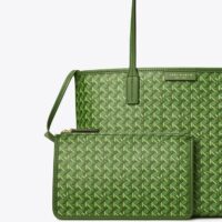 Multitâche par excellence. Un cabas élégant et extrêmement fonctionnel. Léger et résistant, notre nouveau cabas Ever Ready en toile enduite imperméable est doté d’une fermeture zippée sur le dessus et s’accompagne d’une pochette assortie. Ses anses fines sont assez longues pour le porter confortablement à l’épaule. Notre emblématique imprimé cannage s’inspire de la fascination de Tory pour la vannerie, les paniers en osier de sa maison de Valley Forge, en Pennsylvanie, les sacs tissés ramenés de voyage et le cannage des chaises des cafés parisiens. Son micro motif est à la fois neutre et audacieux.
