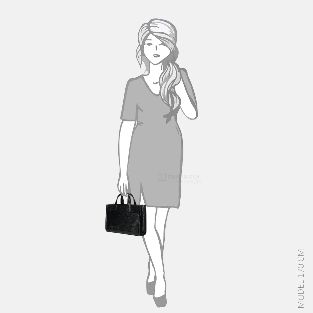 Gigi est le petit dernier de la marque Michael Kors. Confectionné en simili cuir effet vinyle noir, ce cabas spacieux à poignées sur le dessus accueillera vos essentiels, le temps d'une journée ou d'un court week-end.