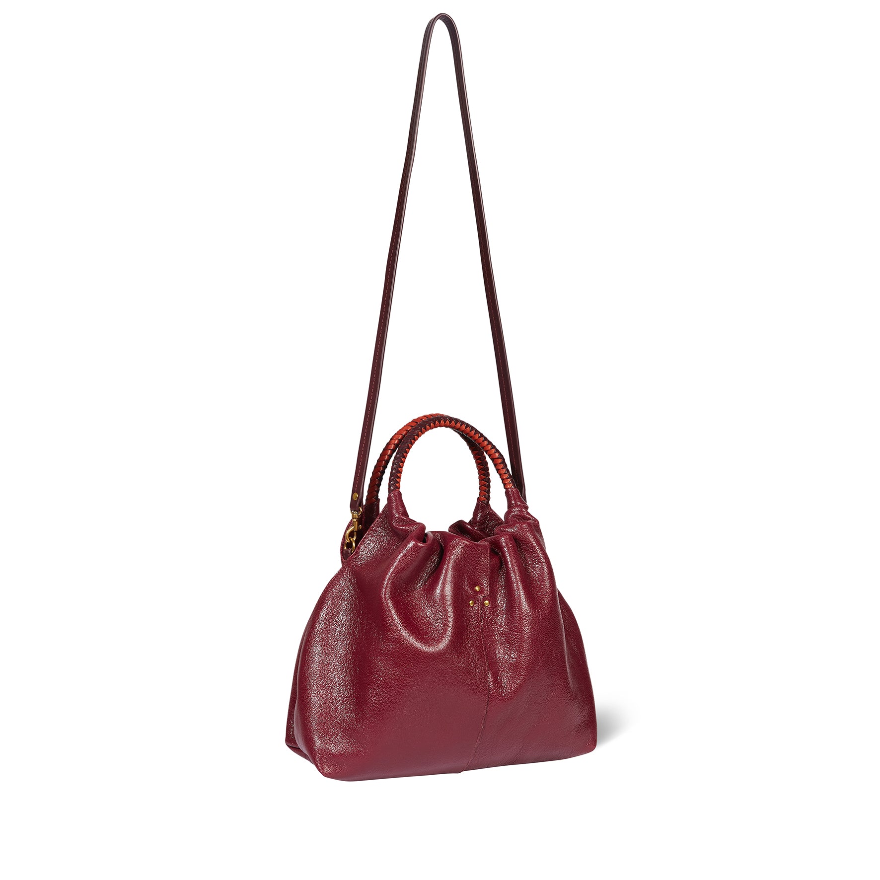 Sac bourse à anses rondes porté main ou en bandoulière. Bandoulière amovible.