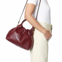 • Sac bourse à anses rondes porté main ou en bandoulière.