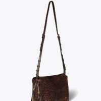Sac besace, porté épaule ou croisé. Bandoulière en cuir amovible et ajustable. Fermeture par un rabat en cuir aimanté.