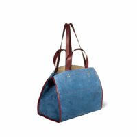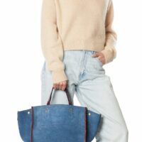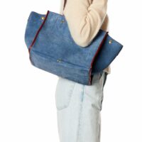 Sac cabas, porté main ou épaule. Poignées en cuir. Fermeture par des pattes en cuir pressionnées.