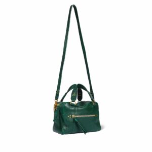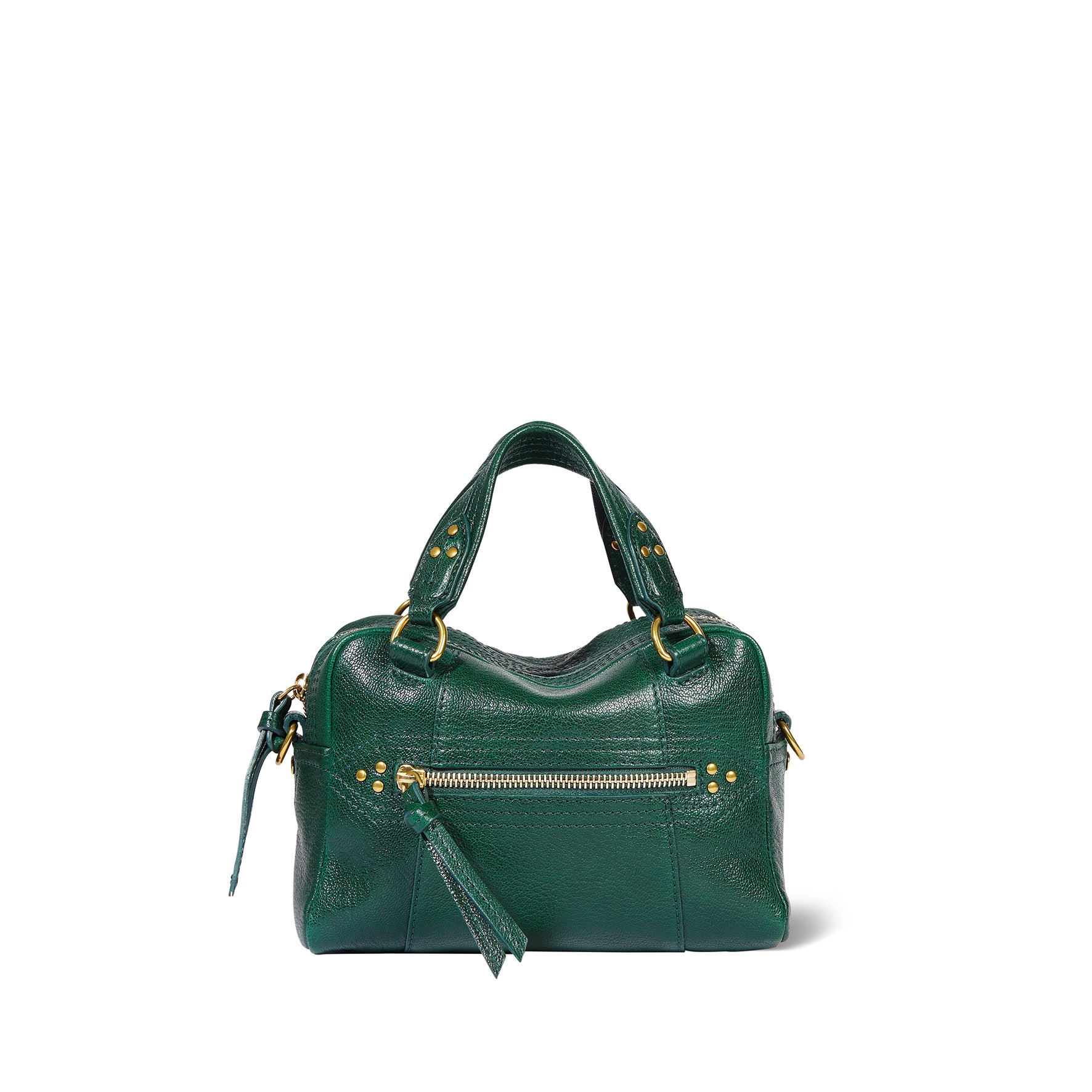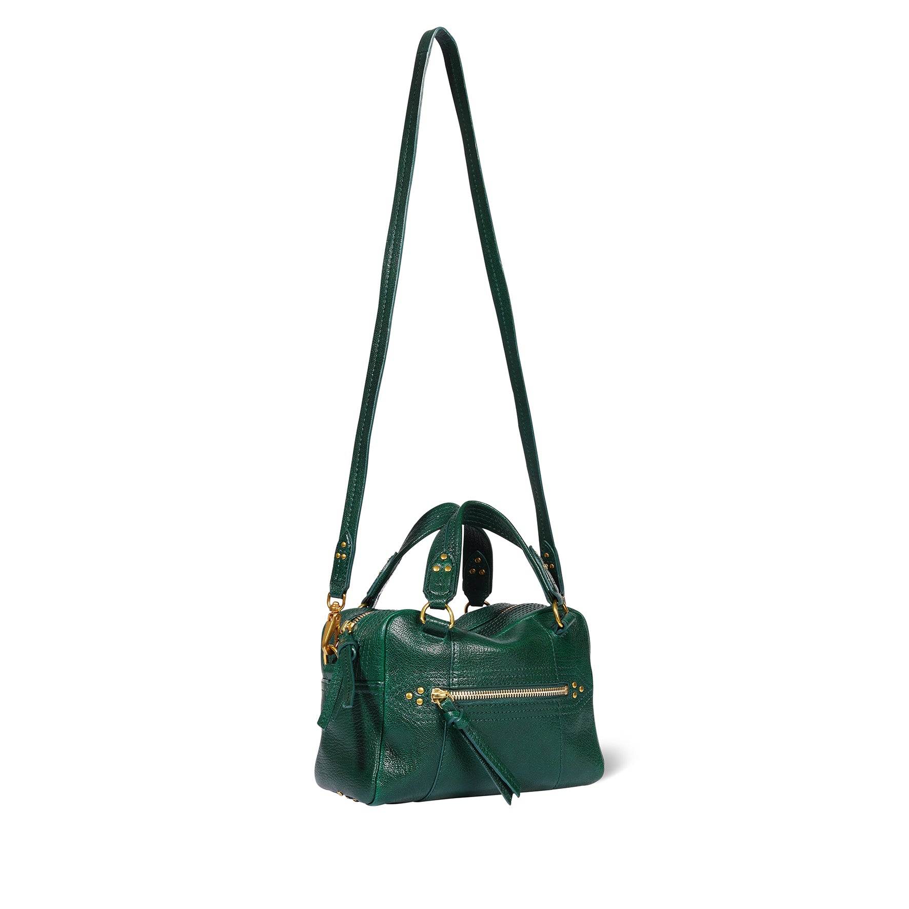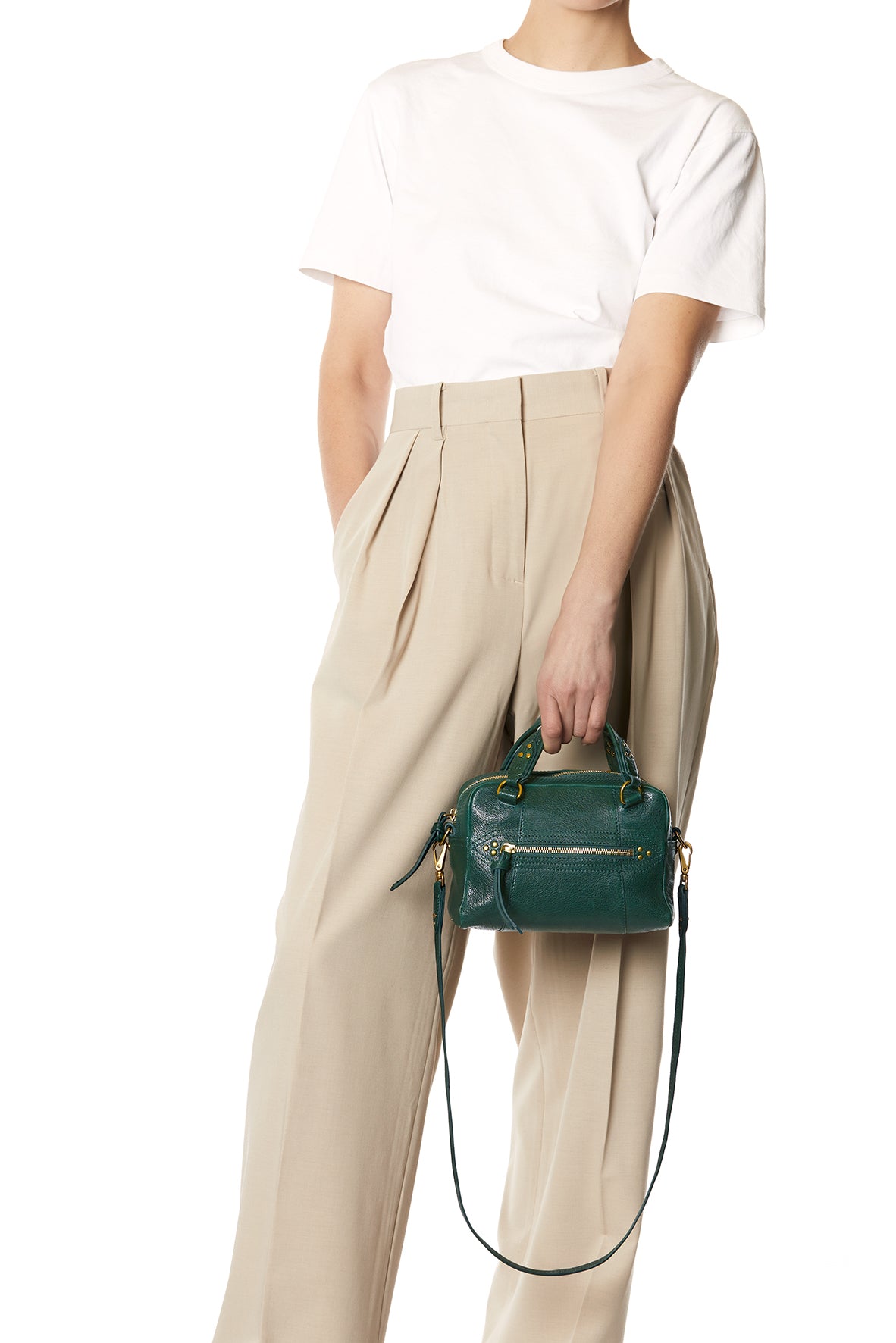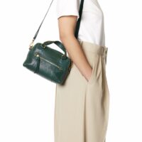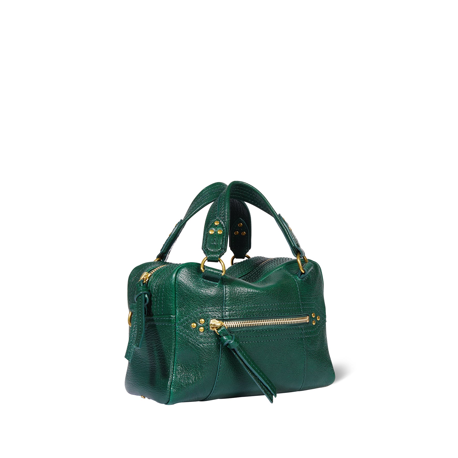 Sac bowling porté main ou en bandoulière. Bandoulière amovible, fermeture zippée avec des liens en cuir.