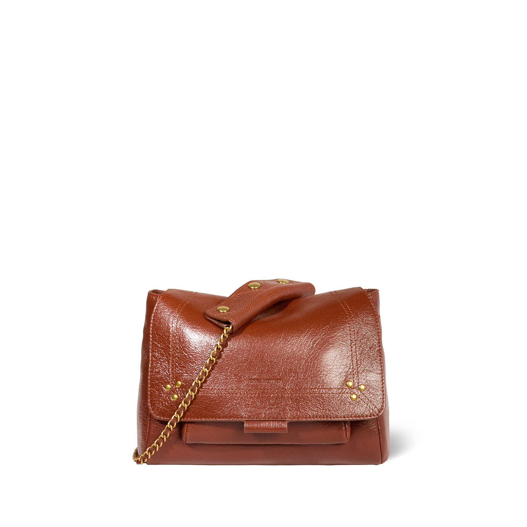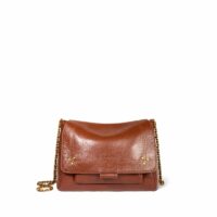 Sac besace, porté épaule ou croisé. Bandoulière chaîne et cuir, amovible et ajustable. Rabat avec fermeture aimantée.