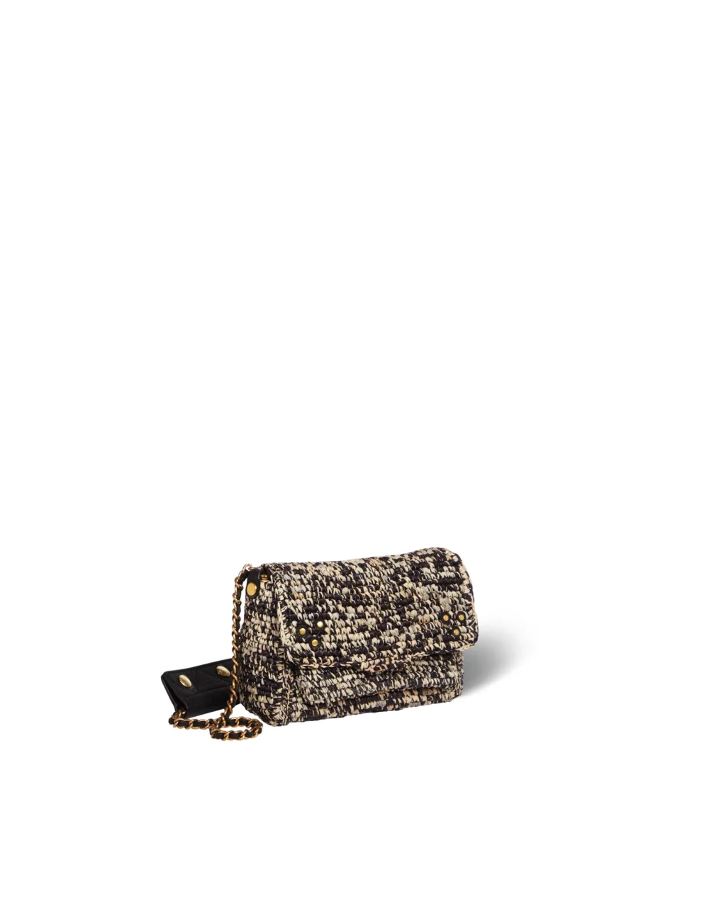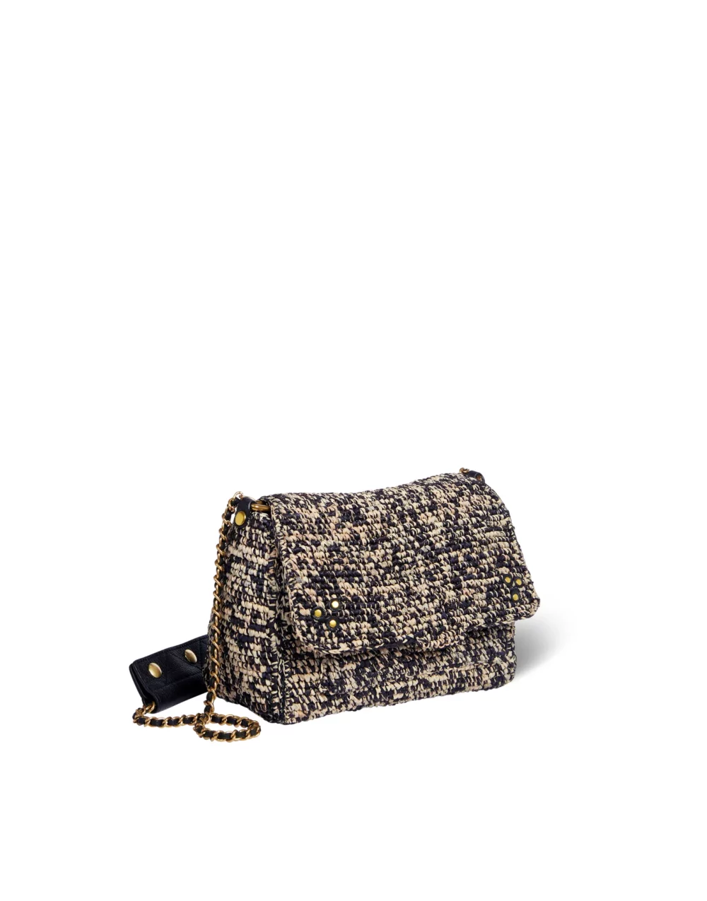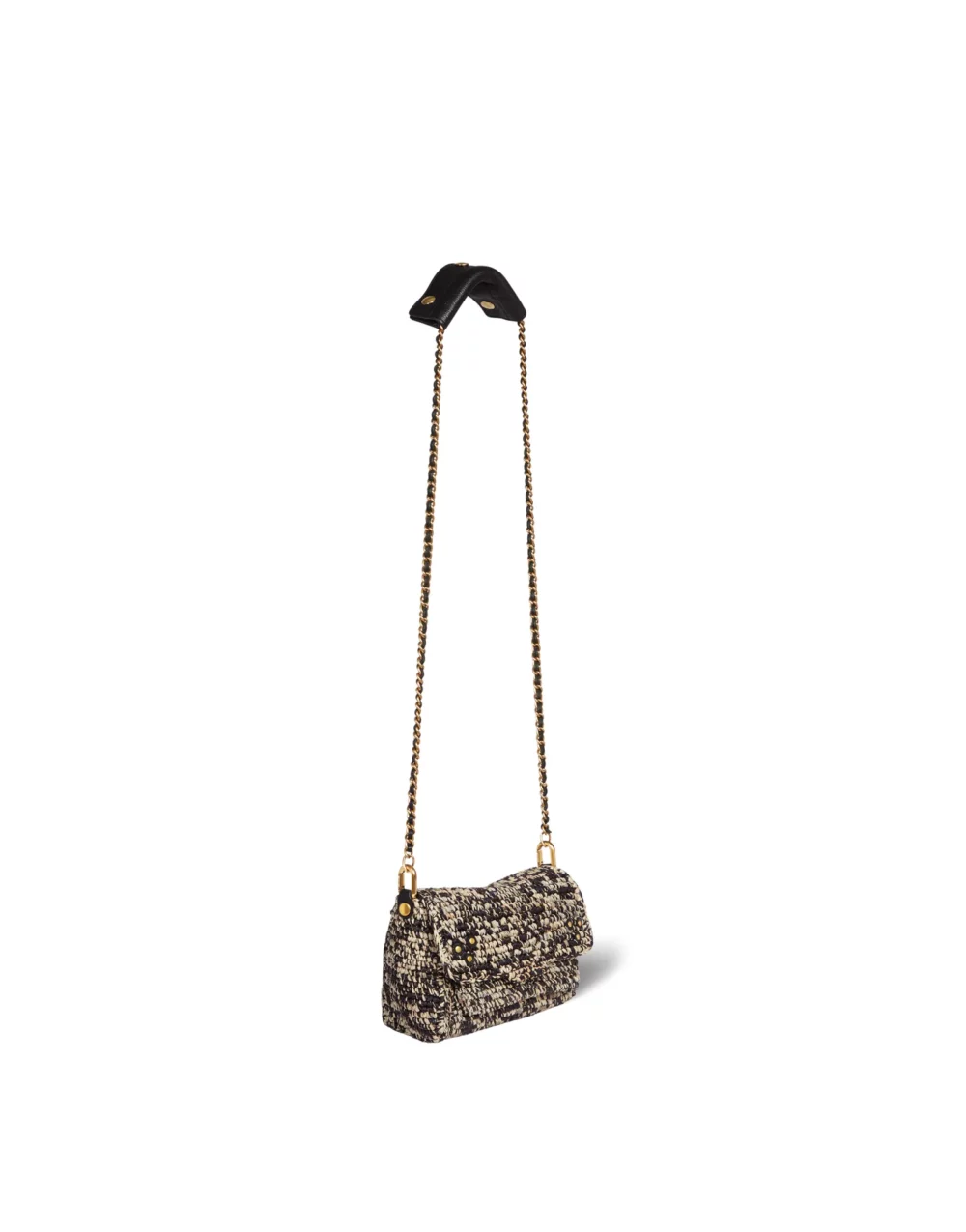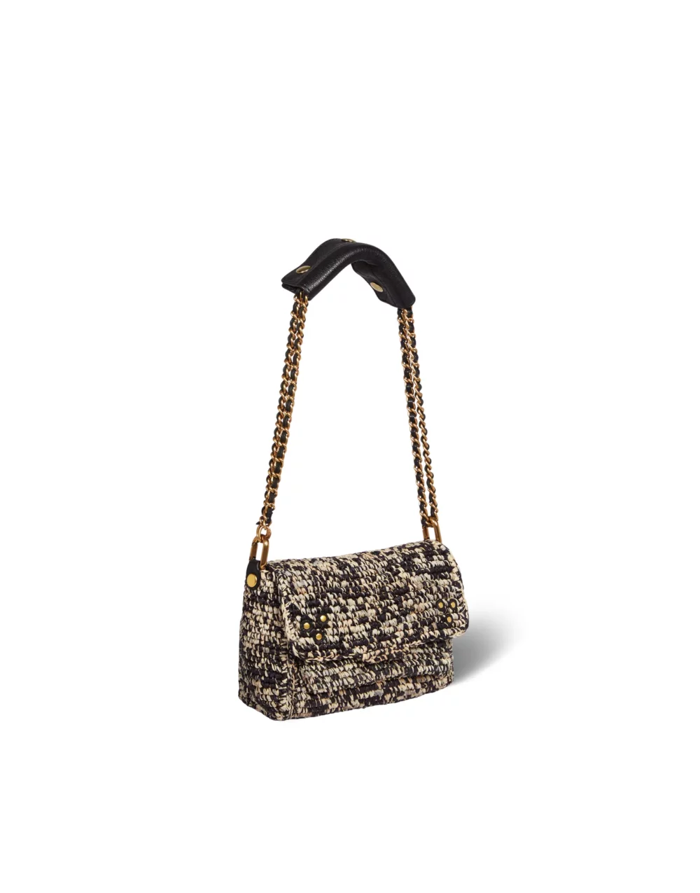 <br>Bandoulière chaîne et cuir, amovible et ajustable. <br>Rabat avec fermeture aimantée.