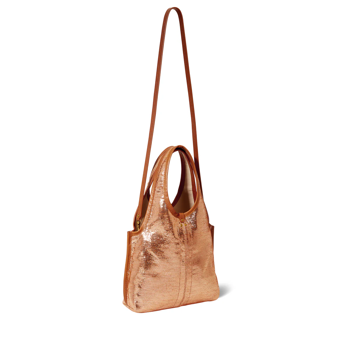 Sac cabas souple aux anses rondes qui se porte à l’épaule façon tote bag, à la main ou en croisé avec sa bandoulière amovible.