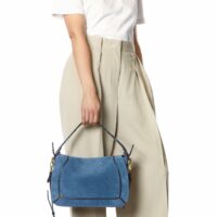 • Une anse en cuir matelassée et une longue bandoulière réglable et amovible.