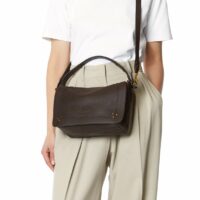 Sac bandoulière, à porter à l'épaule, en croisé ou à la main. Anse en cuir matelassé et bandoulière réglable et amovible. La fermeture se fait par un rabat en cuir aimanté, orné de joncs piqués. Un design épure, aux nombreux détails artisanaux minutieux et discrets et aux lignes déstructurées. Le travail de précision sur les quatre piqûres des anses met en valeur la qualité et le soin apportés à chaque détail. Les enchapes de la bandoulière et des anses présentent un relief évoquant les harnais d'équitation, ajoutant une touche d'élégance et de tradition.