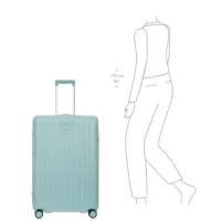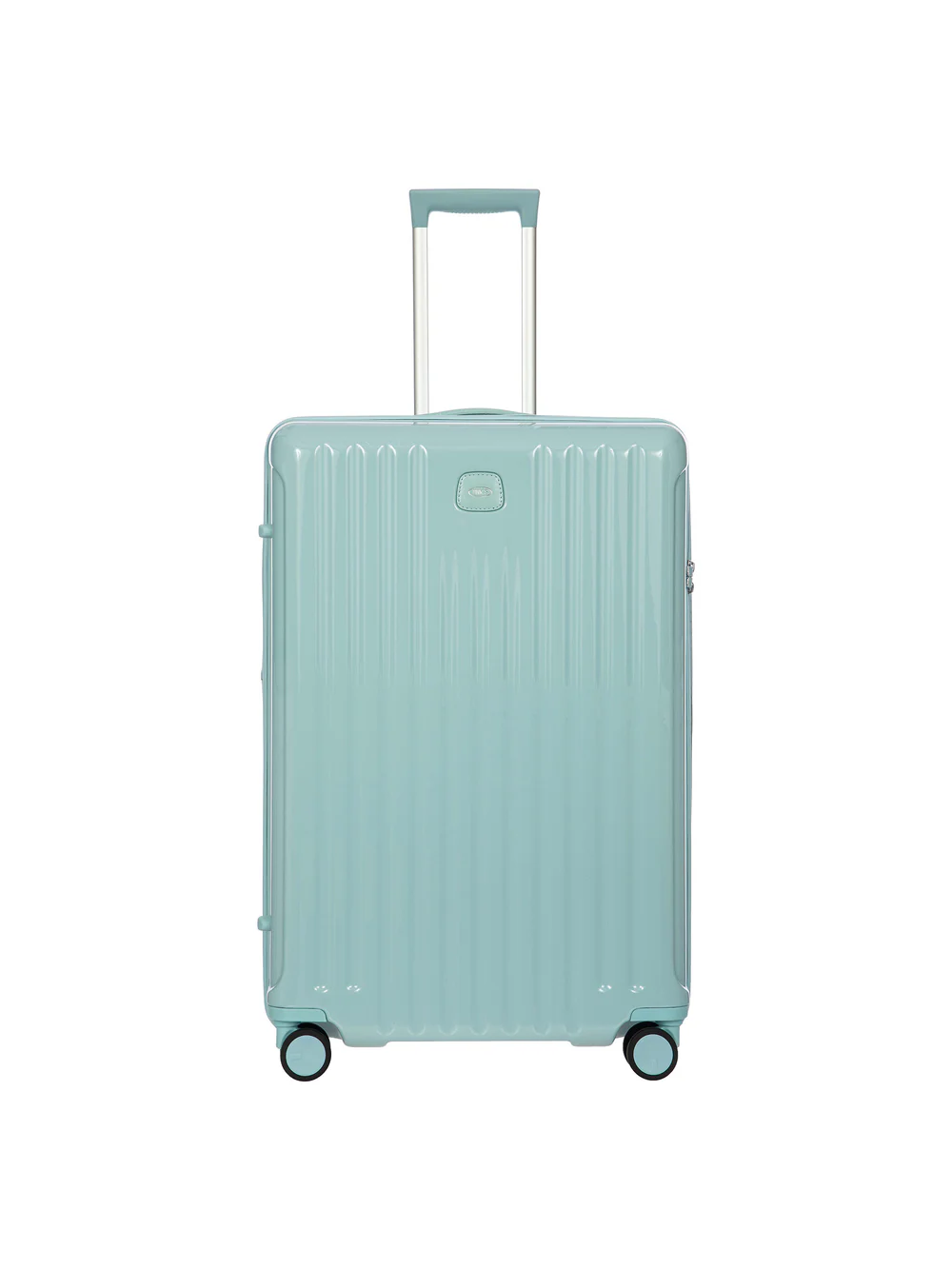 La valise Bric's Positano 69 cm présente autant de qualités esthétiques que techniques, dans des dimensions qui conviennent pour des séjours entre une et deux semaines. Extensible, elle gagne grâce à son soufflet 4 cm d'épaisseur et atteint une capacité de 90 litres. Conçue en polycarbonate, elle bénéficie de la flexibilité et de la robustesse de ce matériau pour résister aux manipulations peu soigneuses, notamment lors de la mise en soute lorsque l'on voyage en avion. Cette durabilité est confirmée sa garantie à vie. Sa coque brillante striée d'élégantes lignes verticales est proposée dans des teintes originales déclinées en ton sur ton sur l'ensemble du bagage : sur la fermeture à glissière, les poignées, les roues et la doublure intérieure. Les finitions en cuir apportent une touche finale raffinée. Parfaite côté style, elle l'est aussi sur le plan de la praticité avec un agencement fonctionnel et un tractage confortable. Enfin, son dernier atout réside dans son impact environnemental, minime grâce à sa fabrication en polycarbonate recyclé.