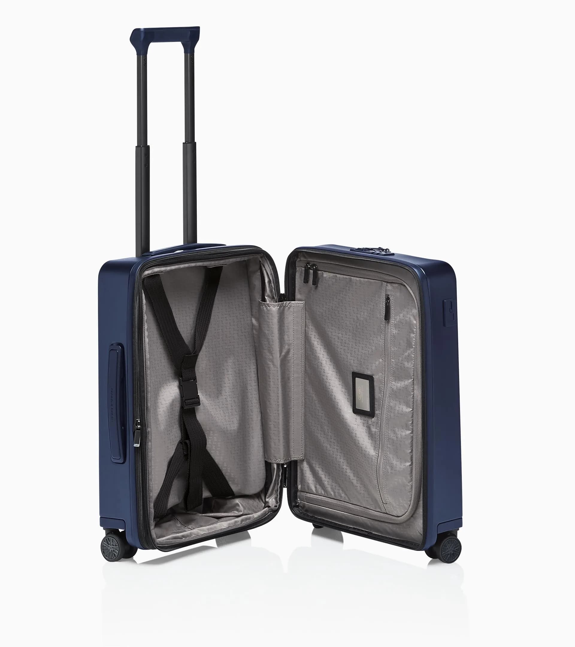 Valise à roulette très légère avec poche avant de Porsche Design. Rouleaux discrets. Accepté comme bagage à main par la plupart des compagnies aériennes.