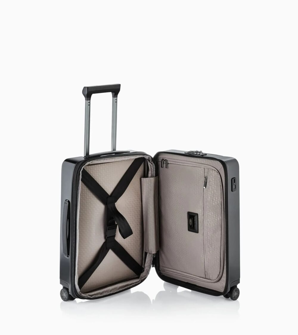 Valise à roulette très légère avec poche avant de Porsche Design. Rouleaux discrets. Accepté comme bagage à main par la plupart des compagnies aériennes.