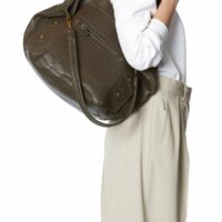 Sac cabas, porté épaule. Deux poignées en cuir et une bandoulière en cuir amovible. Fermeture zippée.
