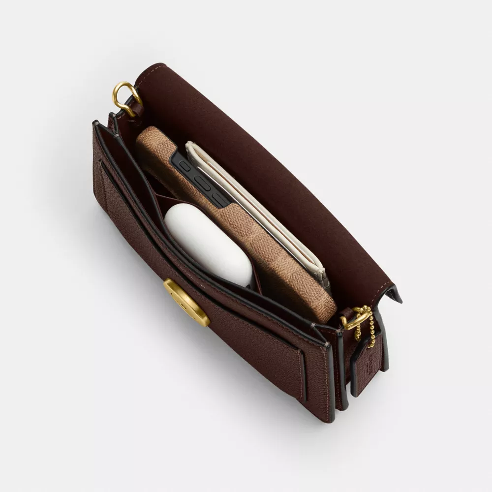 Réinterprétation moderne d'un modèle Coach des années 1970, notre sac bandoulière Tabby Chain 19 est confectionné en cuir galet poli. Orné de notre signature métallique, ce sac à deux compartiments bien organisés offre un espace idéal pour les cartes, l'argent et un téléphone, avec une poche extérieure plaquée pour un accès facile à vos essentiels. Polyvalent, il se porte aussi bien à la main qu'en bandoulière grâce à son élégante chaîne, ce qui en fait le choix parfait pour des tenues habillées ou décontractées.
