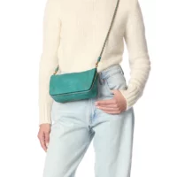 Le sac Bobi S imprimé croco agave, une création raffinée de Jérôme Dreyfuss, séduit par son élégance et sa fonctionnalité. Sa bandoulière en chaîne tressée de cuir, modulable et amovible, permet un porté épaule ou croisé selon les envies. Son design est sécurisé par un rabat aimanté, ouvrant sur un espace bien agencé avec miroir et lien porte-clés, rendant chaque sortie aussi pratique qu'élégante.