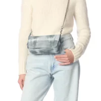 Sac Bobi TIE&DYE Gris porté épaule ou en croisé avec sa bandoulière.