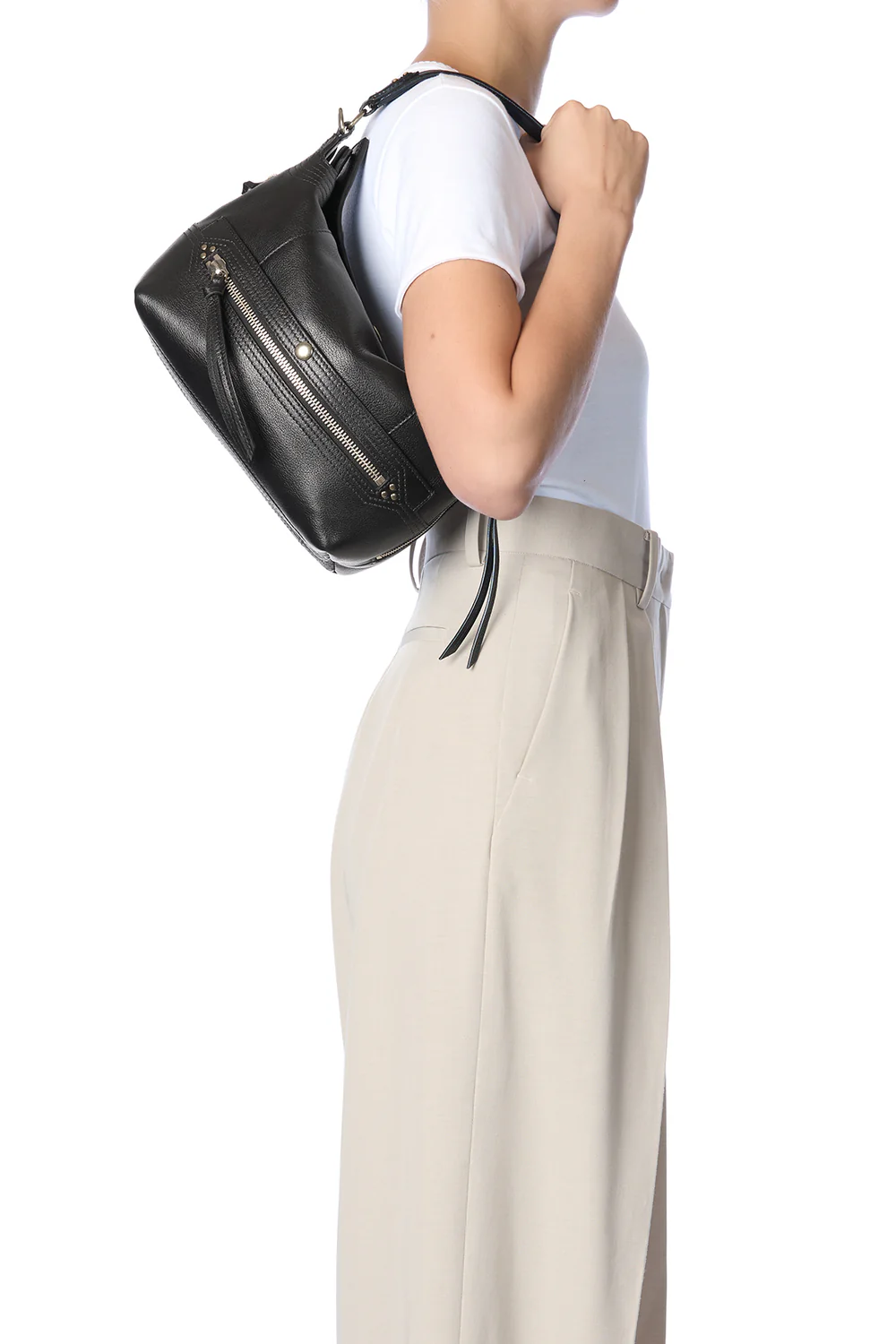 Sac baguette hobo porté épaule ou en croisé avec sa bandoulière.
