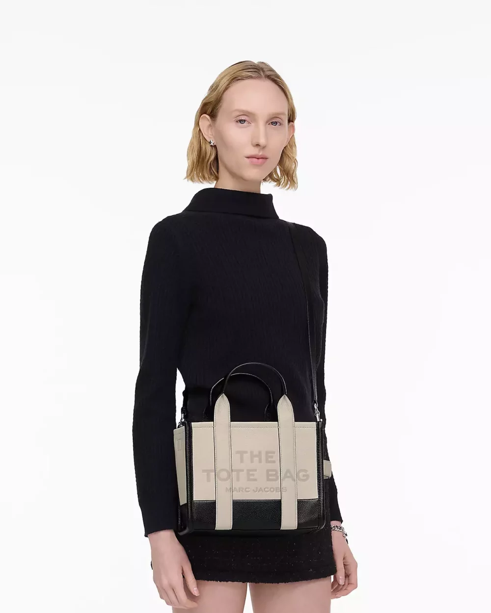 Cette version de notre Small Tote Bag est entièrement confectionnée en cuir grainé avec un design colorblock sensationnel. À l'intérieur, il comprend une poche plate et une fente pour carte. Portez-le par les poignées supérieures ou attachez la bandoulière réglable et amovible pour un style mains libres. Fait partie de la collection THE.