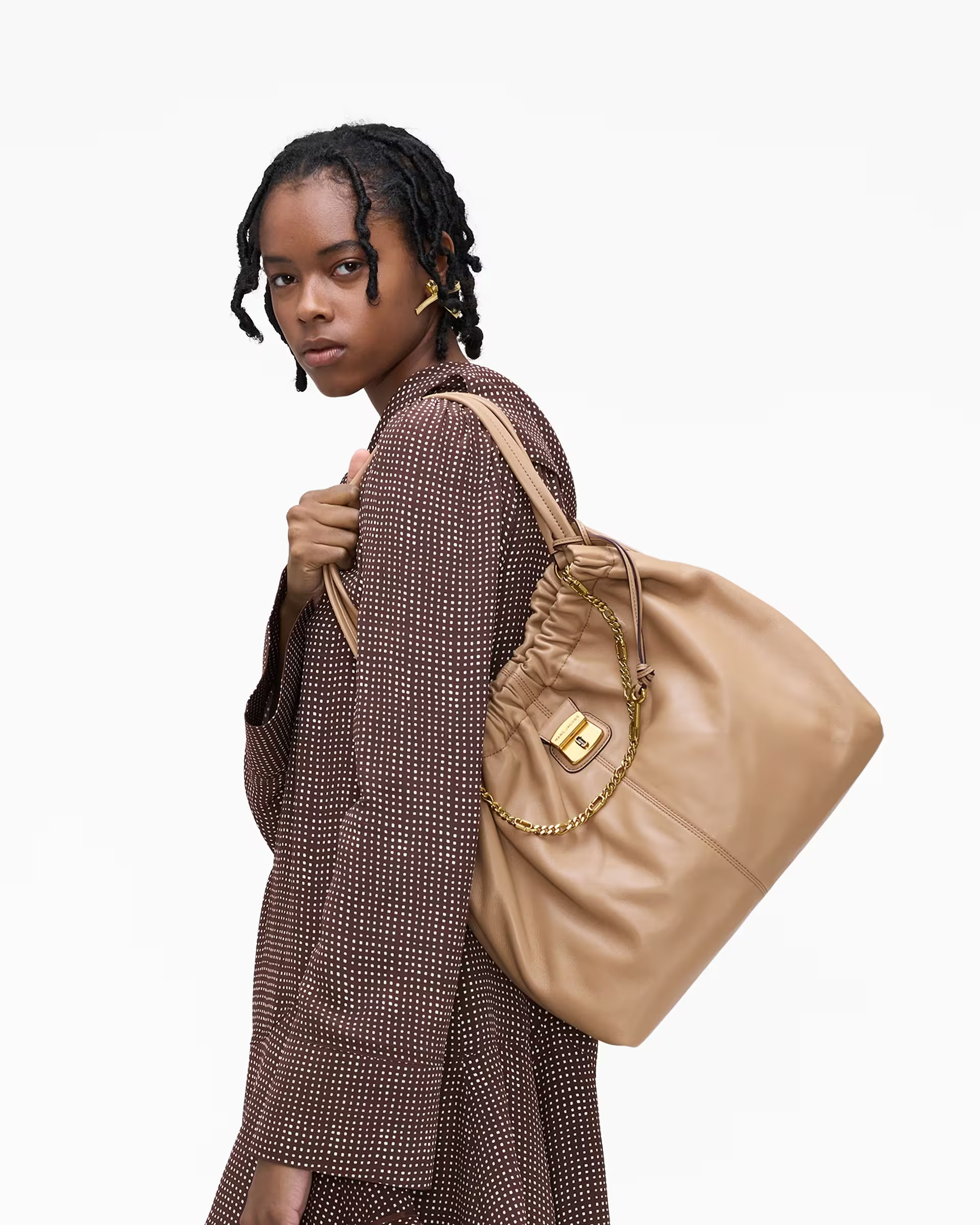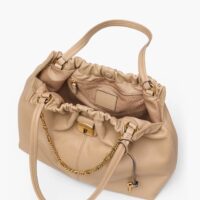 Ce tote bag à l’allure décontractée s’inspire des archives « Marc by Marc » et ravive les codes esthétiques de la marque grâce à des éléments métalliques inspirés du patrimoine et à ses détails froissés distinctifs, le tout réinterprété dans un cuir nappa à la douceur veloutée.