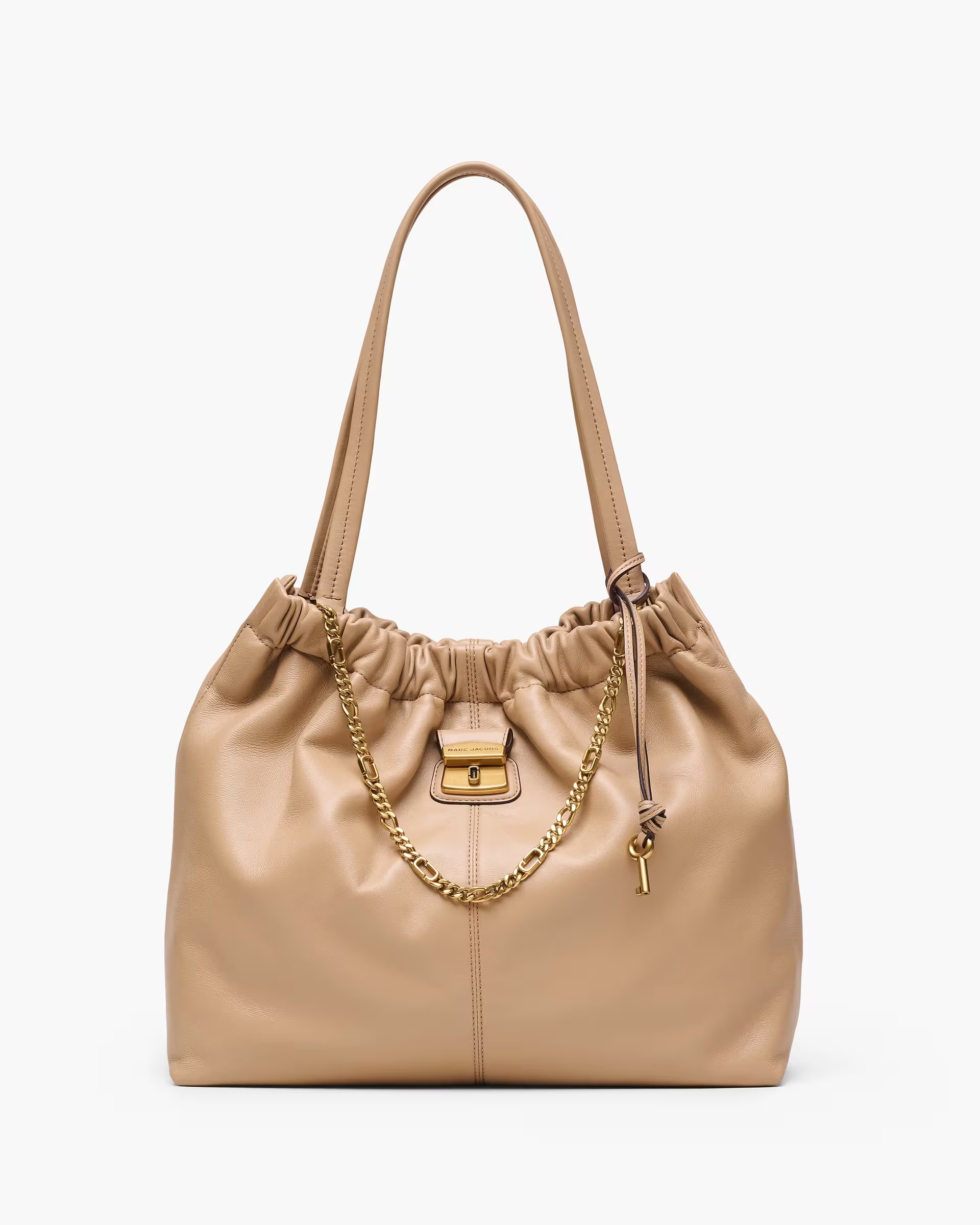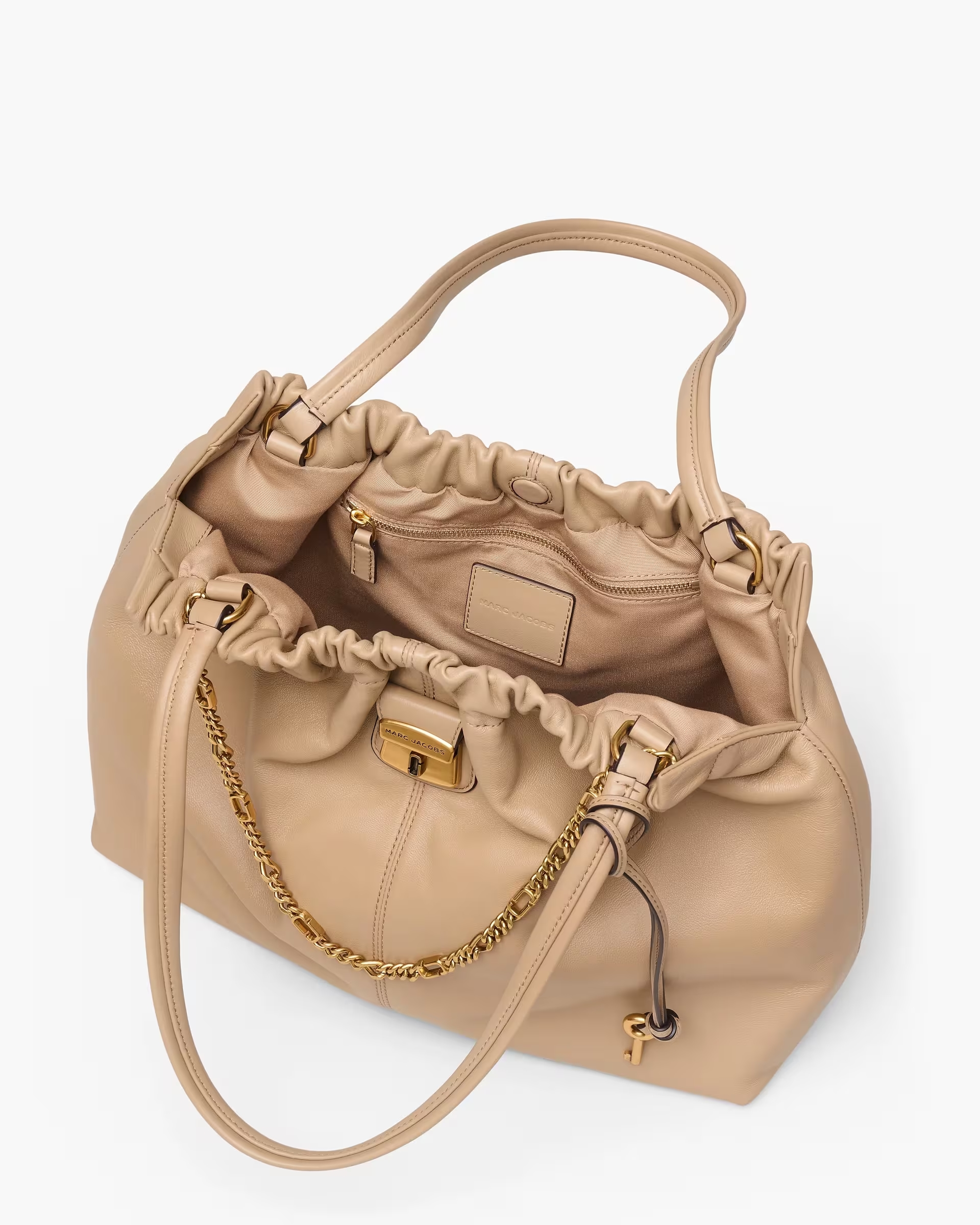 Ce tote bag à l’allure décontractée s’inspire des archives « Marc by Marc » et ravive les codes esthétiques de la marque grâce à des éléments métalliques inspirés du patrimoine et à ses détails froissés distinctifs, le tout réinterprété dans un cuir nappa à la douceur veloutée. À la fois léger et suffisamment spacieux pour accueillir un ordinateur portable 13 pouces, il s’adapte naturellement à votre journée : depuis les réunions de travail aux sorties décontractées, en passant par tous les événements imprévus qui peuvent avoir lieu entre les deux. Il est rehaussé d'une chaîne J Marc et d'un charm clé d’archives, clin d’œil à sa ligne et à sa réinterprétation résolument moderne.