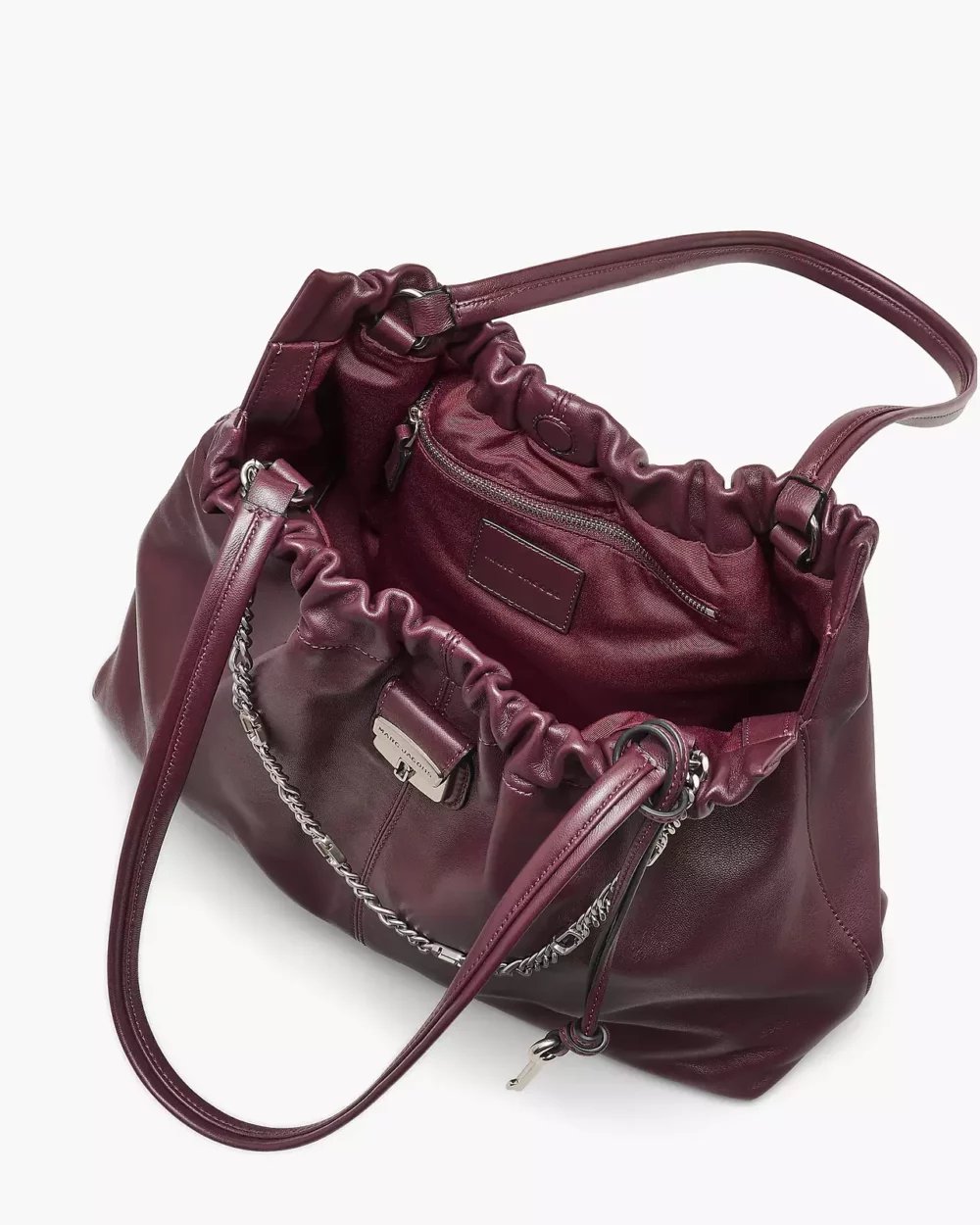 Ce tote bag à l’allure décontractée s’inspire des archives « Marc by Marc » et ravive les codes esthétiques de la marque grâce à des éléments métalliques inspirés du patrimoine et à ses détails froissés distinctifs, le tout réinterprété dans un cuir nappa à la douceur veloutée. À la fois léger et suffisamment spacieux pour accueillir un ordinateur portable 13 pouces, il s’adapte naturellement à votre journée : depuis les réunions de travail aux sorties décontractées, en passant par tous les événements imprévus qui peuvent avoir lieu entre les deux. Il est rehaussé d'une chaîne J Marc et d'un charm clé d’archives, clin d’œil à sa ligne et à sa réinterprétation résolument moderne.