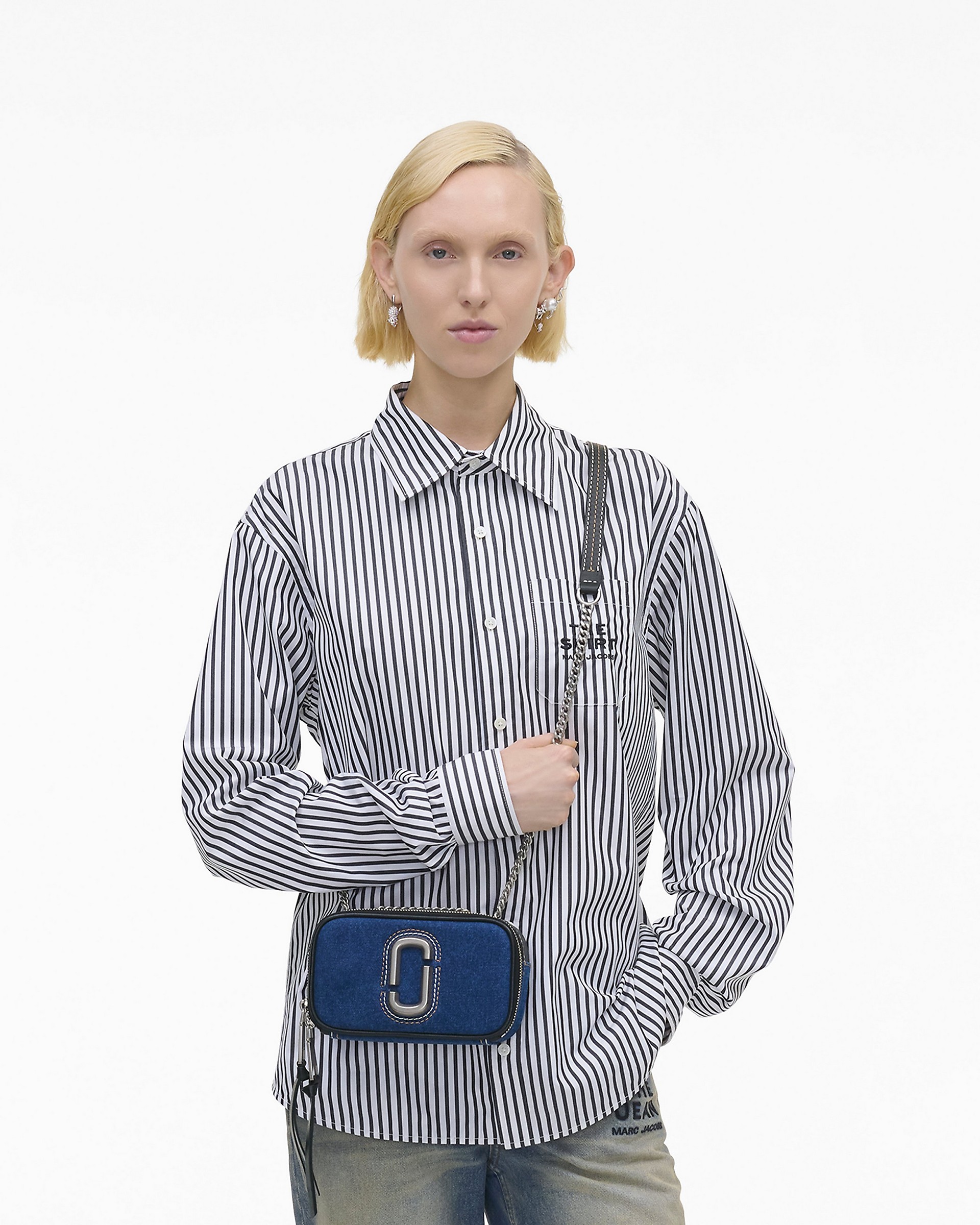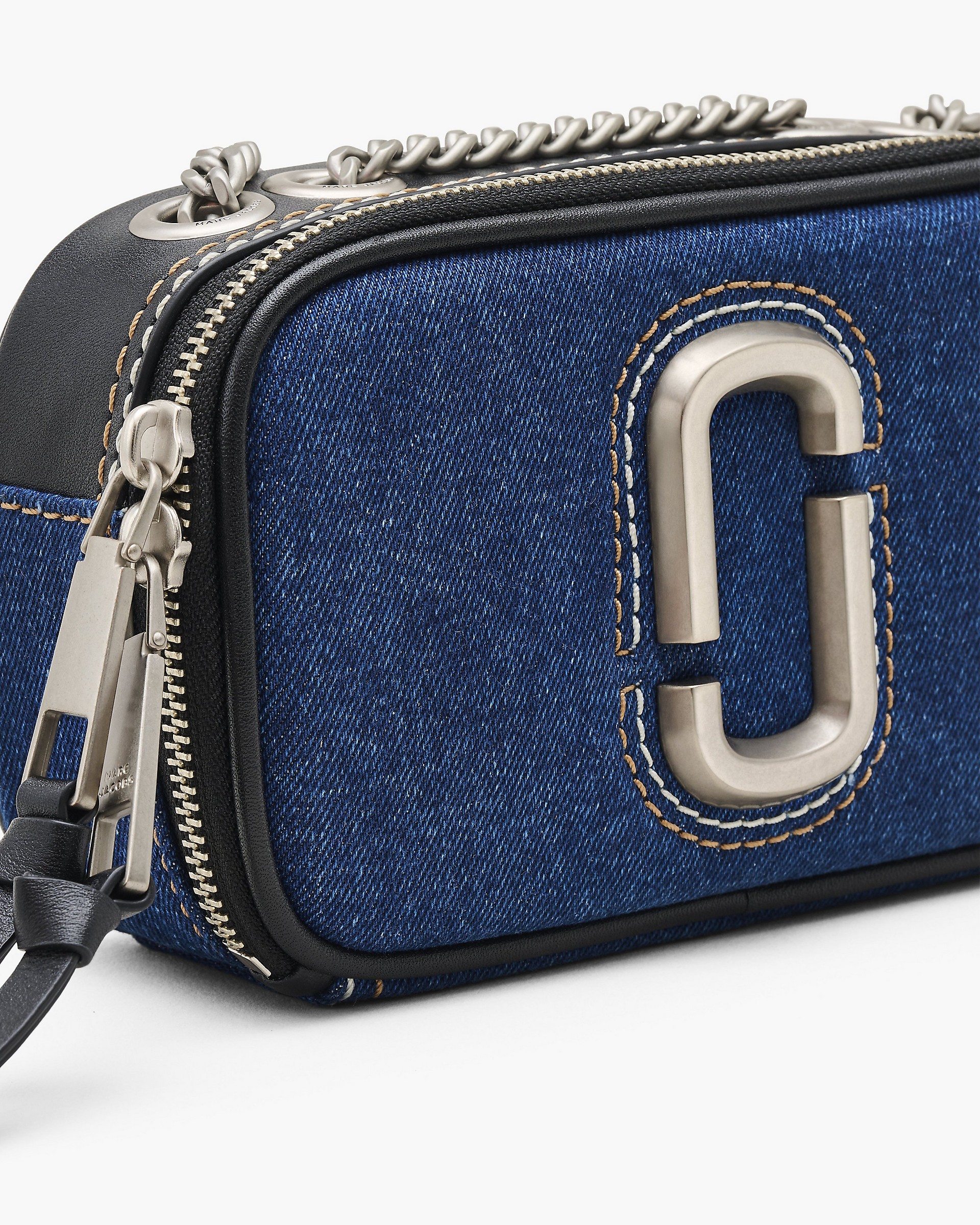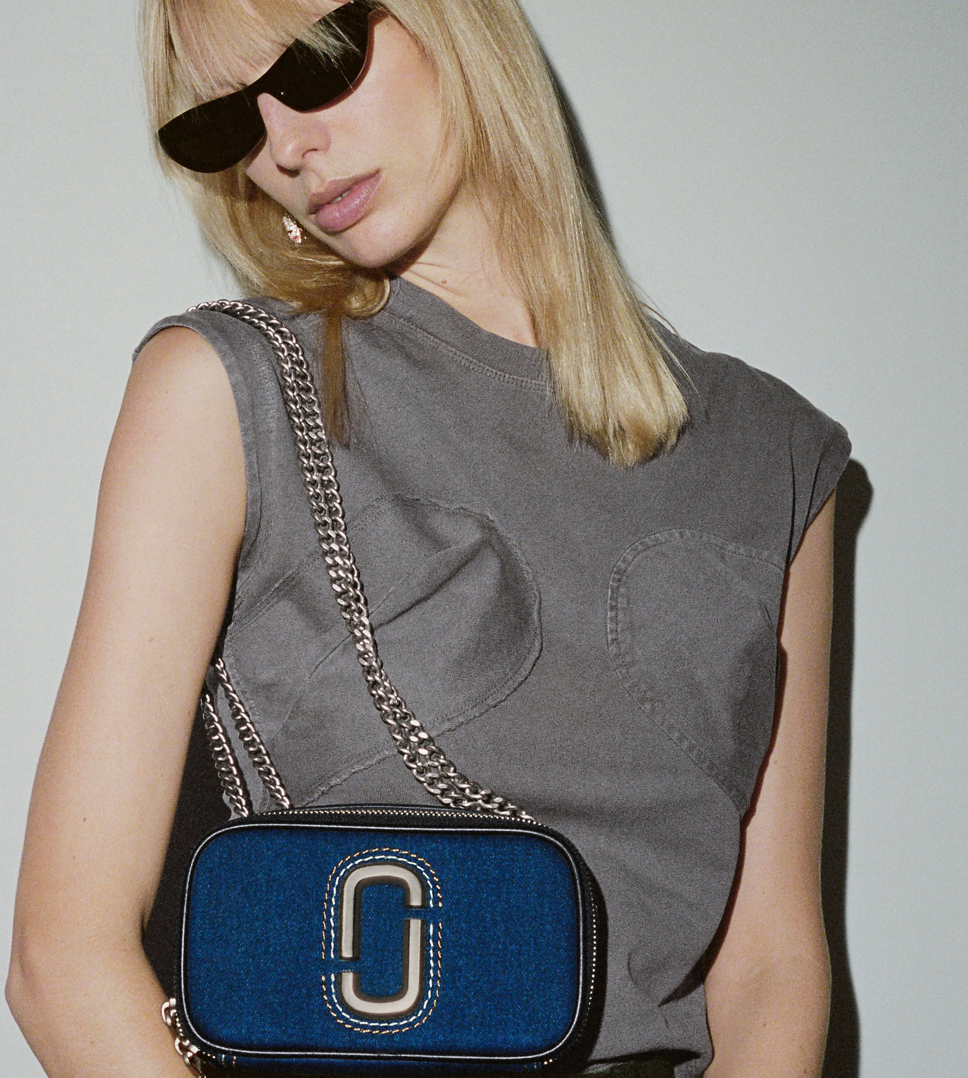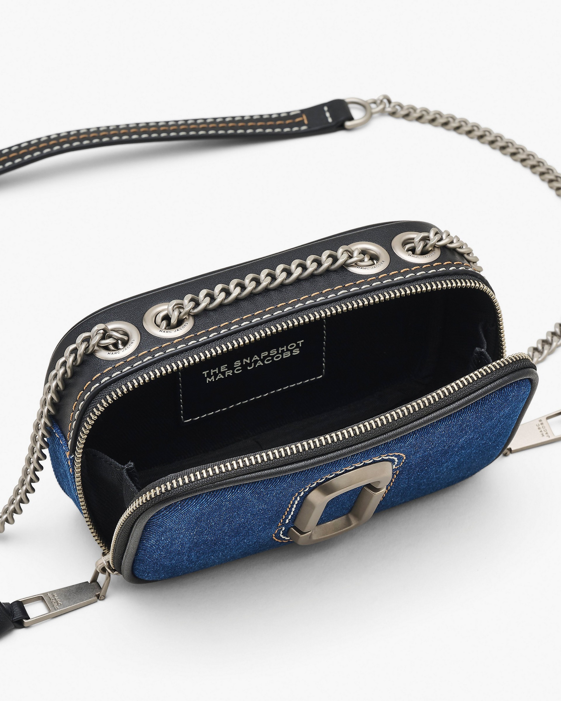 Ce sac Snapshot élégant et emblématique, en denim structuré de luxe, est une pièce d'archive du défilé devenue culte. Il est doté d'un compartiment zippé, de notre double J métallique signature et d'une élégante bandoulière en chaîne.