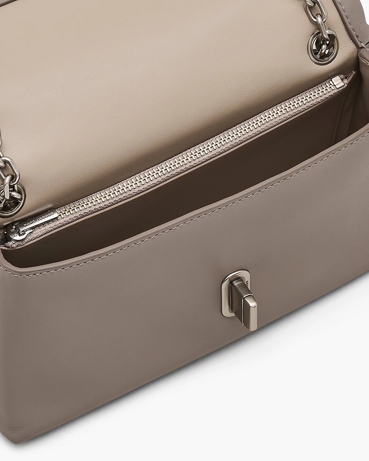 Un accessoire élégant et épuré inspiré de la silhouette de notre collection Dual. Plus qu'un portefeuille, ce mini sac compact élégant vous permet de ranger votre téléphone, vos cartes de crédit, votre monnaie, vos clés et votre rouge à lèvres. Confectionné en cuir lisse souple, The Dual Chain Wallet est doté d'un fermoir rotatif J Marc et d'une bandoulière chaîne amovible raffinée pour un porté épaule ou en bandoulière.