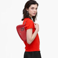 Confectionné en cuir lisse et orné de boucles décoratives à lanières, ce sac est une déclaration de style (torride). La tirette en forme de cœur ajoute une touche ludique, tandis que la mention « FOLLOW YOUR HEART » embossée et laminée au dos offre un clin d’œil subtil au thème. Doté d’une fermeture supérieure zippée, d’une bandoulière en cuir amovible et d’une autre bandoulière réglable, il est fait pour être porté à votre guise.