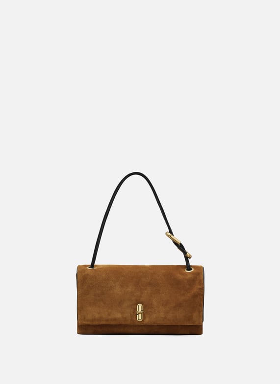 Issu de la collection Automne-Hiver 2025, ce sac à bandoulière est une nouveauté de la marque Marc Jacobs. Fabriqué en daim élégant, il se pare d'un marron clair chic. De forme rectangulaire, il se pare d'une fermeture sécurisée à rabat et tourniquet, ornée d'un logo discret. Ce sac se porte idéalement à l'épaule grâce à sa bandoulière robuste, parfaite pour un usage quotidien ou lors d'occasions spéciales.