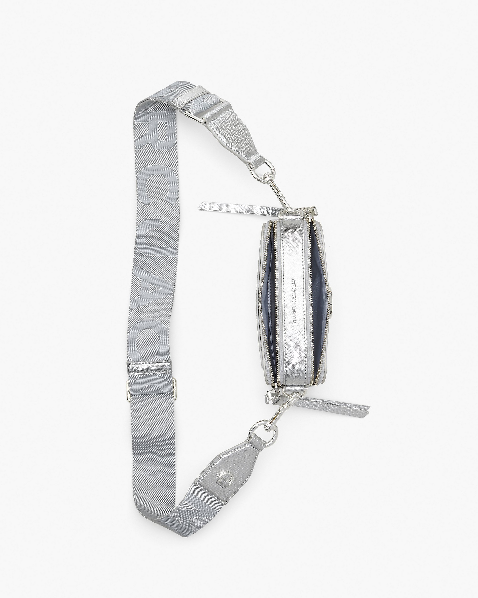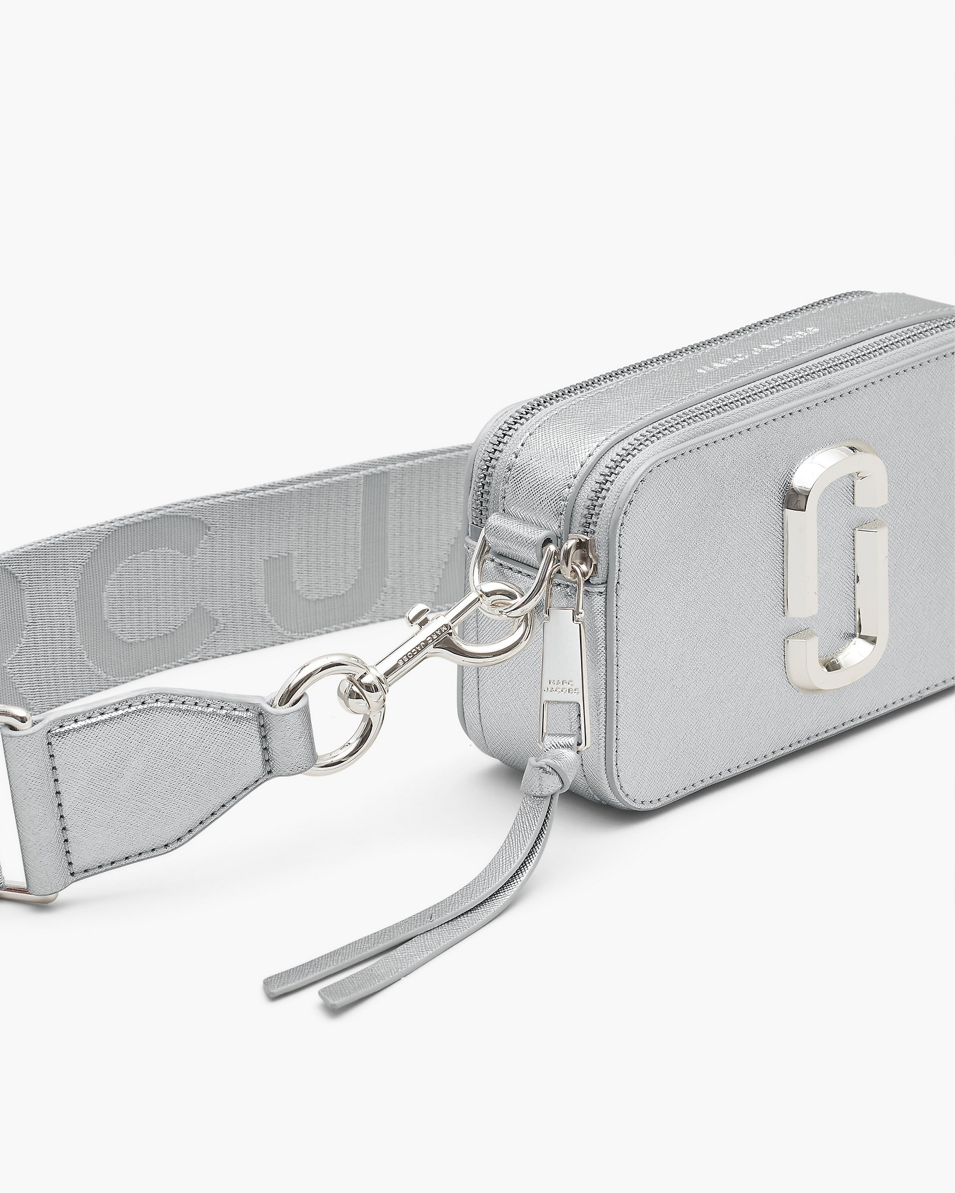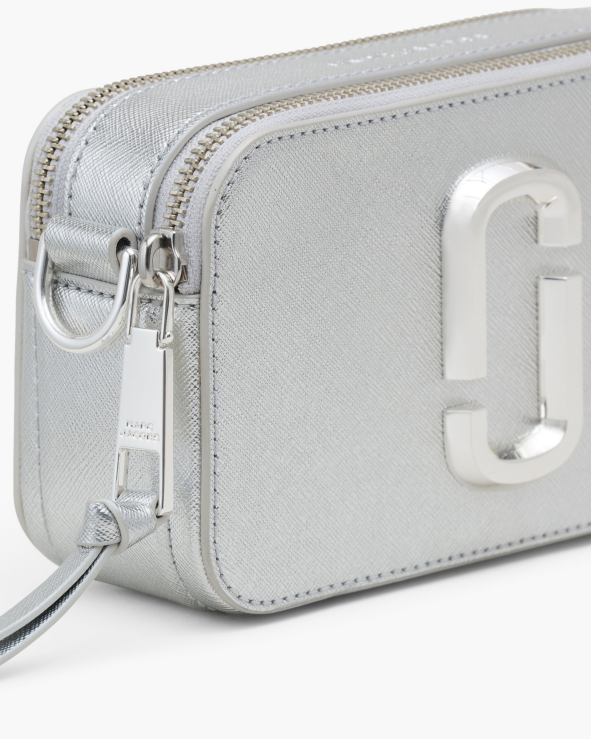 Ce Snapshot audacieux est confectionné dans un cuir Saffiano métallisé argenté et présente une bandoulière tressée réglable et amovible supplémentaire avec une boucle métallique pour plus de style. Il est doté de 1 double fermeture zippée, de 1 poche plate intérieure, de 1 poche plate extérieure et est rehaussé d'un élément métallique J Marc légèrement plus prononcé sur le devant pour créer une nouvelle dimension.