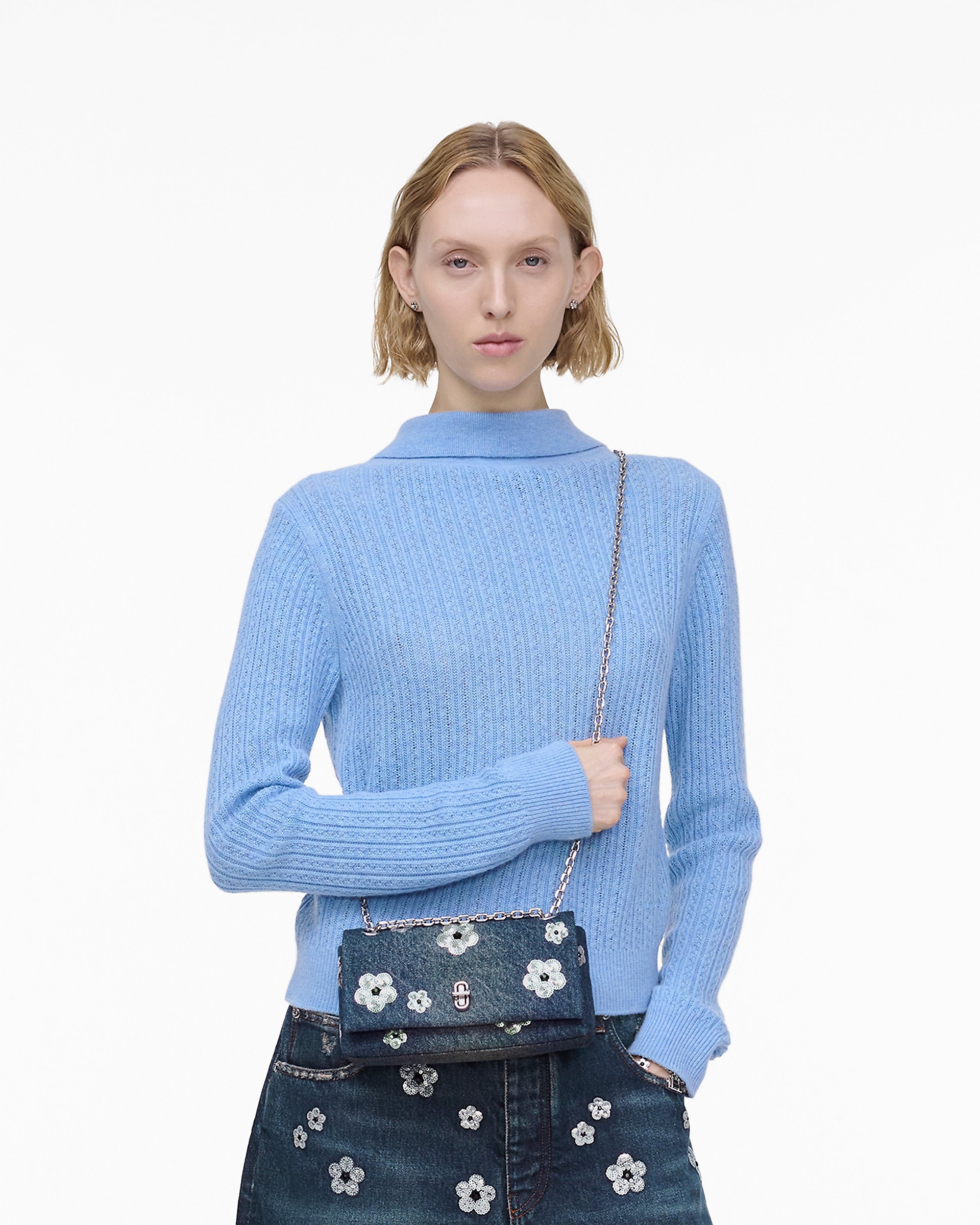Un accessoire élégant et épuré inspiré de la silhouette de notre collection Dual iconique. Plus qu'un portefeuille, ce mini sac compact élégant vous permet de ranger votre téléphone, vos cartes de crédit, votre monnaie, vos clés et votre rouge à lèvres. Confectionné dans un luxueux denim et rehaussé de marguerites en sequins texturées, le Dual Chain Mini Bag est doté d’un élégant fermoir rotatif double J et d’une bandoulière chaîne raffinée pour un porté épaule ou croisé polyvalent.
