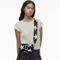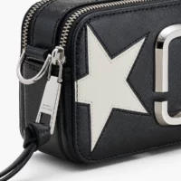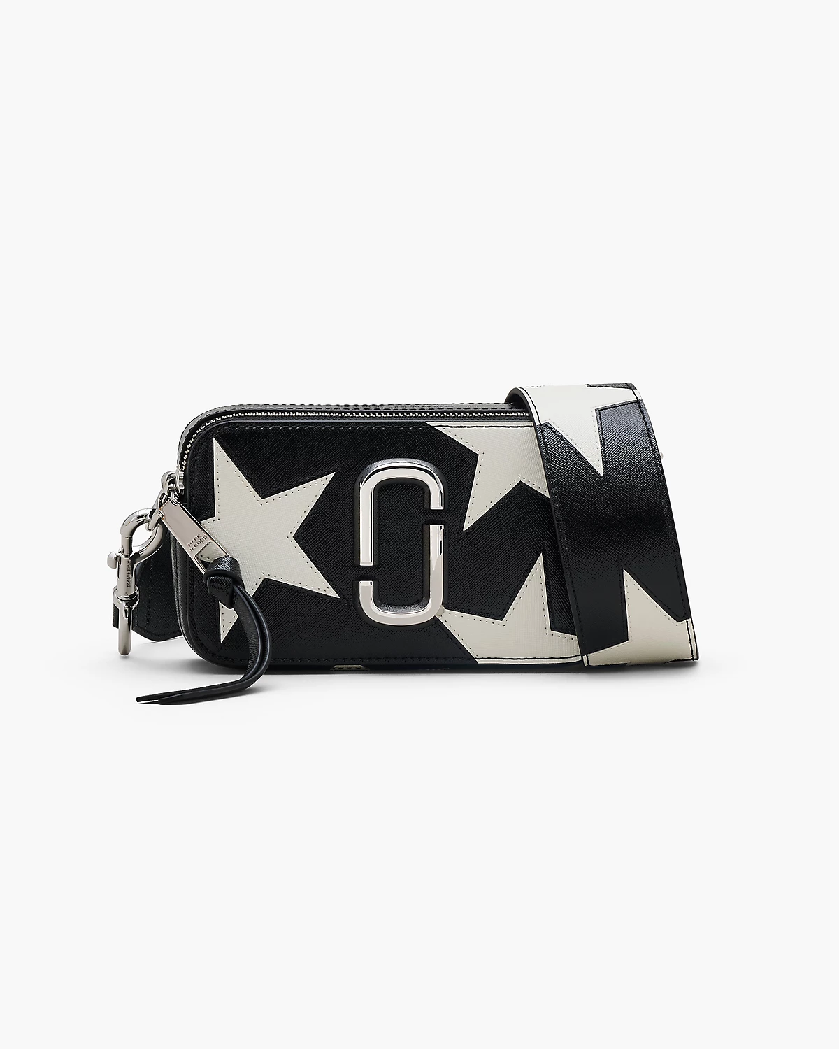 Pièce d'archive des défilés devenue culte, ce sac Snapshot à bandoulière élégant et emblématique en luxueux cuir Saffiano est doté de deux compartiments zippés pour un rangement optimal, de notre signature J Marc, de détails en patchwork d'étoiles en cuir et d'une bandoulière en cuir étoilé exclusive.