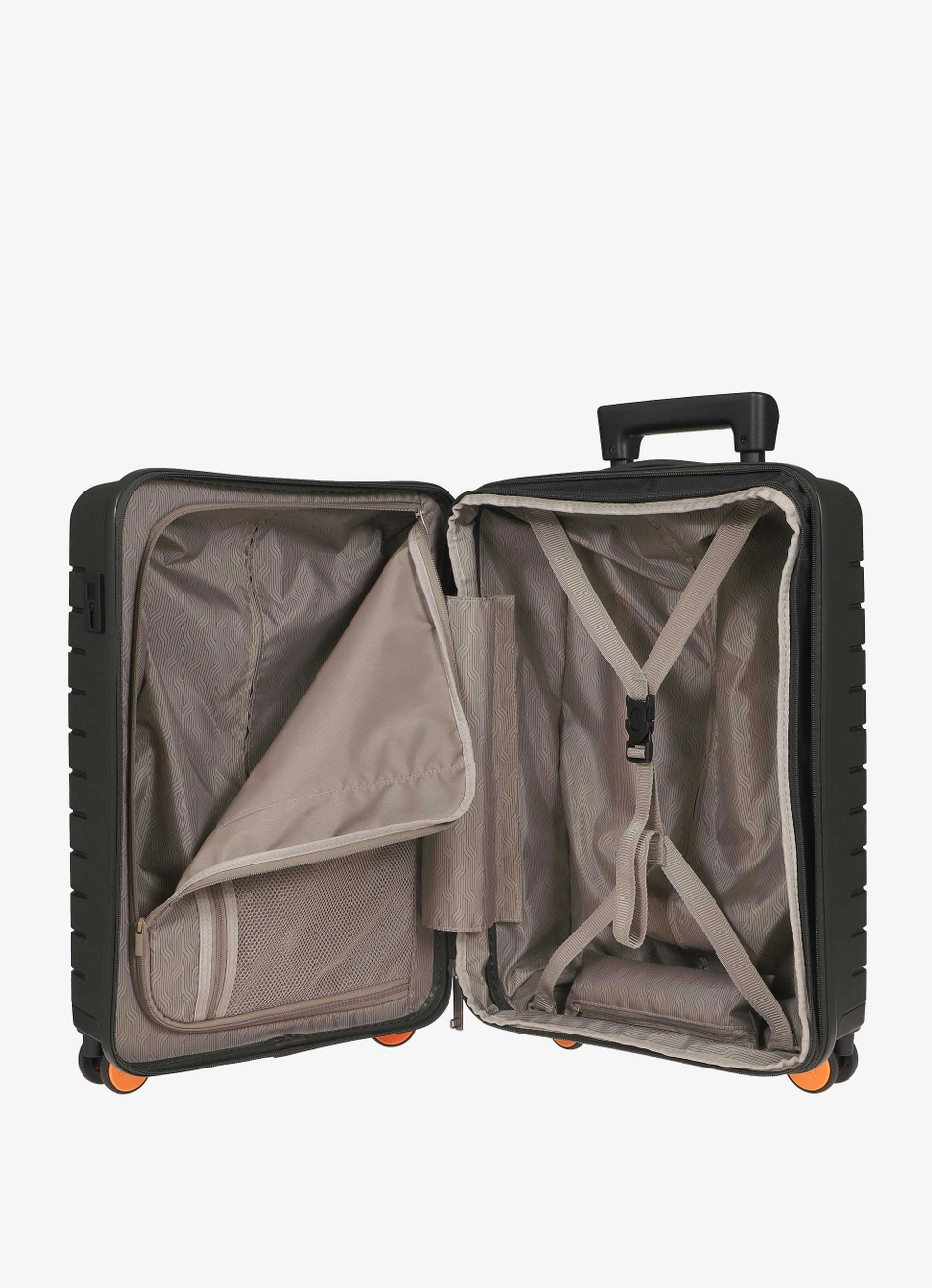Trolley de cabine extensible avec poche issu de la collection Ulisse B|Y Bric’s. Fonctionnel et au look moderne, ce trolley avec poche est idéal par exemple pour les besoins d’un voyage d’affaires. Ce bagage est doté d’une grande robustesse et d’un design sophistiqué grâce à la combinaison entre le polypropylène de la coque externe et le tissu souple mais résistant avec lequel est construite la poche avant, qui révèle une poche rembourrée pour PC et tablette, avec bande de protection. EXTÉRIEUR : coque réalisée en polypropylène pour garantir légèreté, flexibilité et résistance maximales, avec poche avant zippée pour ranger tous les objets à toujours garder à portée de main. Fermeture à glissière avec cadenas TSA à combinaison intégré dans la coque. Zip pour augmenter la profondeur du trolley de 4 cm si nécessaire. POIGNÉE : poignée de traction pratique et fonctionnelle avec tubes en aluminium, dotée de trois positions d’arrêt intermédiaire activables au moyen d’un bouton poussoir. La poignée supérieure est plate et ergonomique.INTÉRIEUR : compartiment avec zip et poche plate à filet d’un côté, bandes pour bloquer les habits de l’autre. Doublure en polyester souple. Poche dédiée contenant une pochette amovible et lavable pour y ranger les chaussures ou le linge.ROUES : quatre roues doubles encaissées pour optimiser le volume du bagage, permettant une rotation aisée à 360°, très silencieuses grâce à leur revêtement en caoutchouc. DÉTAILS : design extérieur caractérisé par un bas-relief d’inspiration urbaine, le même design est répété sur la doublure interne. Détails siglés sur la tirette, sur la poignée de levage et sur les roues, ton sur ton avec la couleur de la coque. Porte-adresse intégré. B|Y. Be Young. Be Bric's.