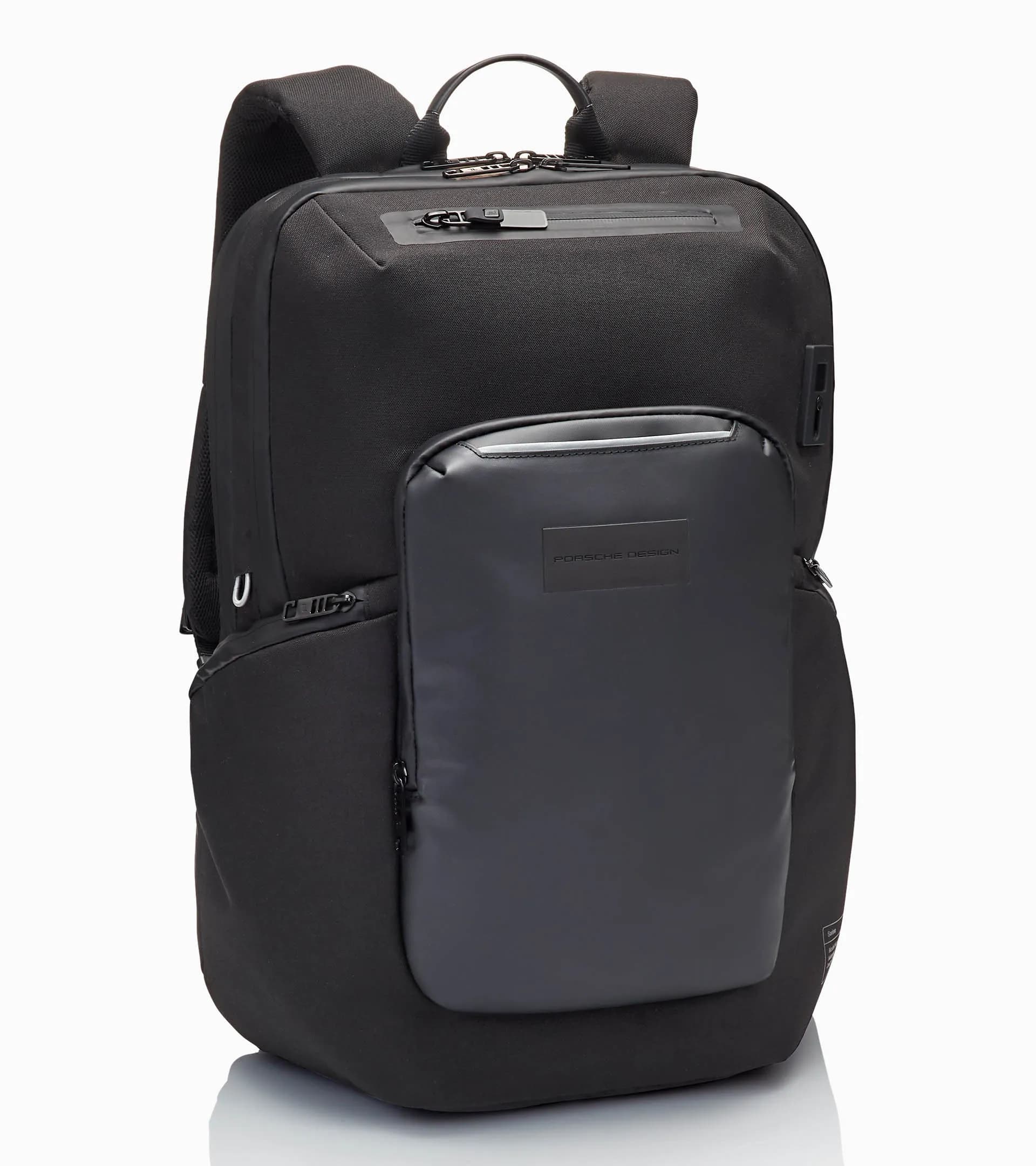 La fusion du style intelligent et de la durabilité, de la fonctionnalité et de la flexibilité : la série Porsche Design Urban Eco ne rentre dans aucune case, mais elle s'intègre parfaitement dans la vie quotidienne moderne. Le sac à dos professionnel Porsche Design Urban Eco M2 impressionne au premier coup d'œil par son design technique et épuré : en polyester hydrofuge avec une poche plaquée en tissu enduit, des fermetures à glissière laminées et des garnitures en métal noir. Au deuxième coup d'œil, les détails attirent l'attention : comme le patch du logo caoutchouté, le passepoil réfléchissant et l'imprimé inspiré des plaquettes de modèle Porsche avec les coordonnées de Zell am See, l'adresse du Studio F.A. Porsche. Les fonctionnalités bien pensées du sac à dos sont invisibles, mais vous pouvez les sentir à chaque fois que vous le portez. Un compartiment séparé à l'arrière pour ordinateur portable jusqu'à 15 pouces, un grand compartiment principal avec poche à glissière, une poche d'insertion supplémentaire et un port USB, une poche à glissière plaquée avec organiseur professionnel et une autre poche d'insertion supplémentaire à l'avant, des poches latérales, le dos en néoprène rembourré avec dragonne pour valise rigide et encore d'autres poches à glissière : ce sac à dos est le partenaire idéal pour le travail.