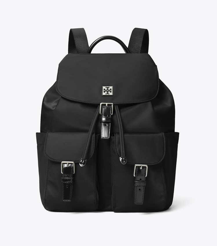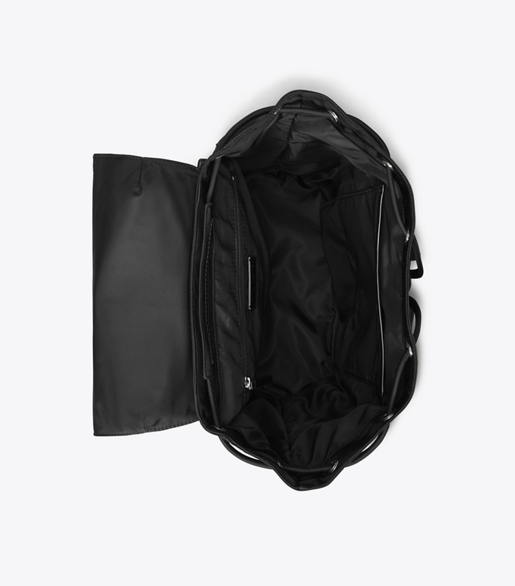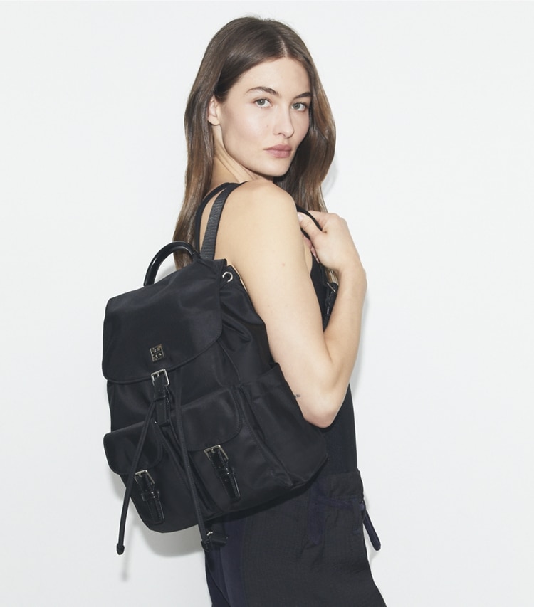 • Fermeture par cordon de serrage ; rabat avec bouton-pression magnétique sous la boucle