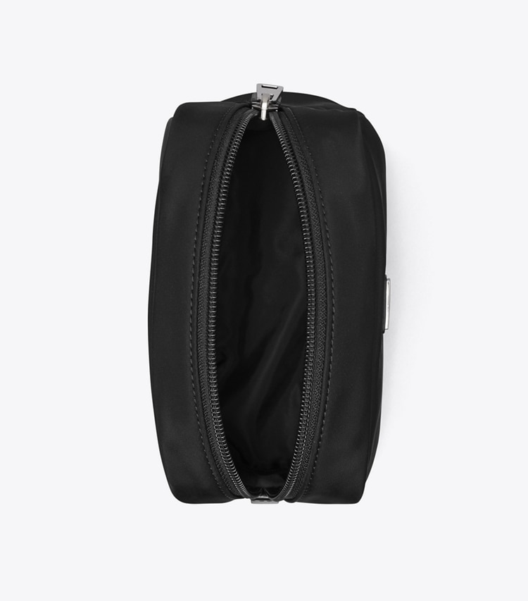 Un classique des années 90 revisité. Fabriquée en nylon recyclé résistant avec une finition en cuir biosourcé, la trousse à maquillage Virginia est ultra-légère et dotée d'une fermeture éclair sur le dessus. Idéale au quotidien et en voyage.