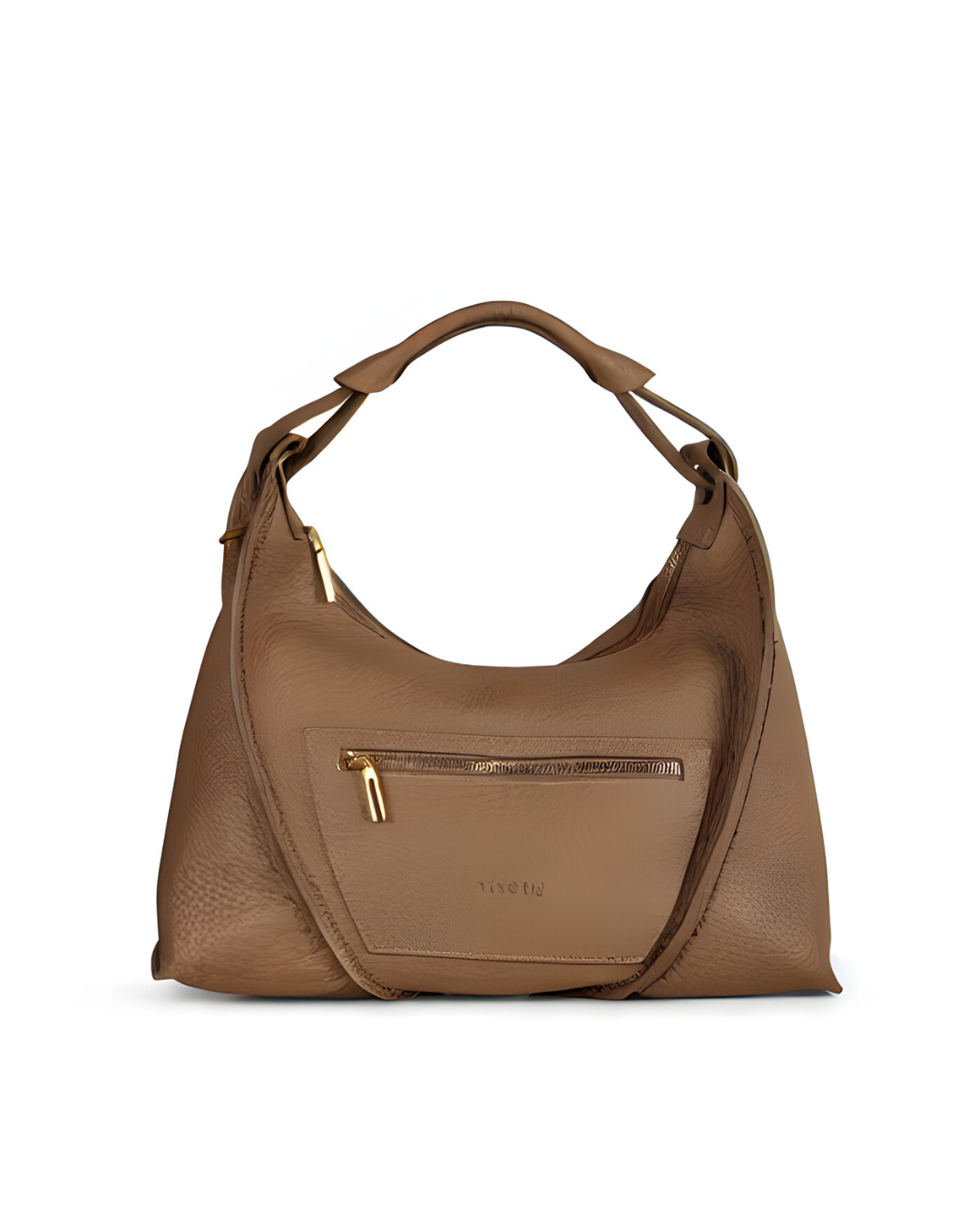 Découvrez la ligne Nora. Cette bourse peut être portée à la main ou à l'aide d'une trace amovible. La cuisine caractéristique ajoute une touche d'élégance et de saveur. 100% fabriqué en Italie.