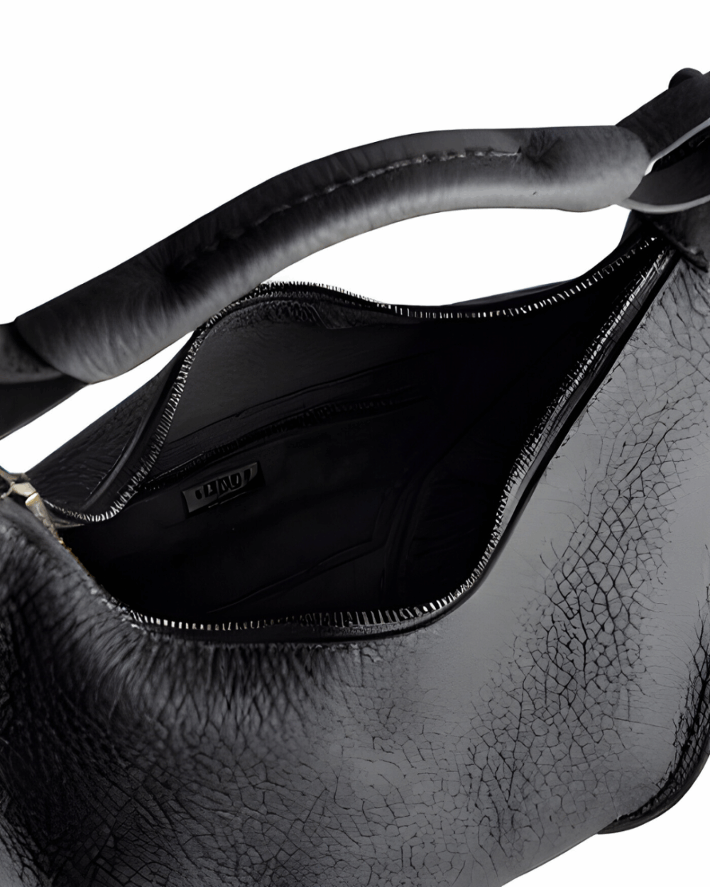 Découvrez la ligne Nora. Cette bourse peut être portée à la main ou à l'aide d'une trace amovible. La cuisine caractéristique ajoute une touche d'élégance et de saveur. 100% fabriqué en Italie.