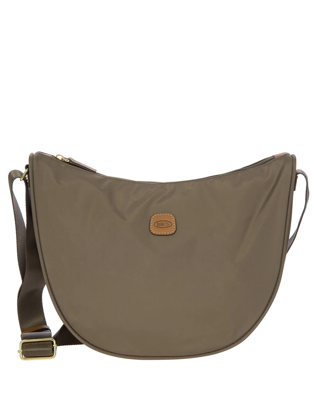 Le sac demi-lune de moyen taille de la X-Collection est réalisé en tissu recyclé, souple, léger et résistant, water-resistant. Grâce à sa bandoulière réglable en longueur, il est confortable à porter sur l'épaule comme en bandoulière. Spacieux du fait de sa forme en demi-lune, il est idéal pour un usage quotidien. Doté d'une poche extérieure zippée au dos et d'une poche intérieure zippée, il vous permet de ranger vos effets personnels. Agrémenté de détails en cuir véritable, il est complété à l'intérieur par une doublure en tissu. Logo iconique Bric's en cuir à l'extérieur.