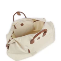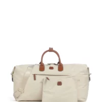 Le sac de voyage de la X-Collection est réalisé en nylon , léger et résistant, avec des poignées en cuir souple. La poche intérieure zippée est amovible et peut se transformer en trousse pratique ou en mini-sac grâce à la bandoulière fournie. À l'extérieur, il est doté d'une poche zippée. Une sangle à l'arrière permet de le fixer à la poignée d'une valise trolley. L'ouverture principale est dotée d'une fermeture zip avec deux curseurs. Sa forme spacieuse le rend particulièrement fonctionnel, et les poignées en cuir ajoutent une touche de luxe.