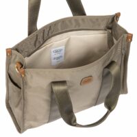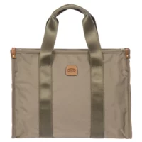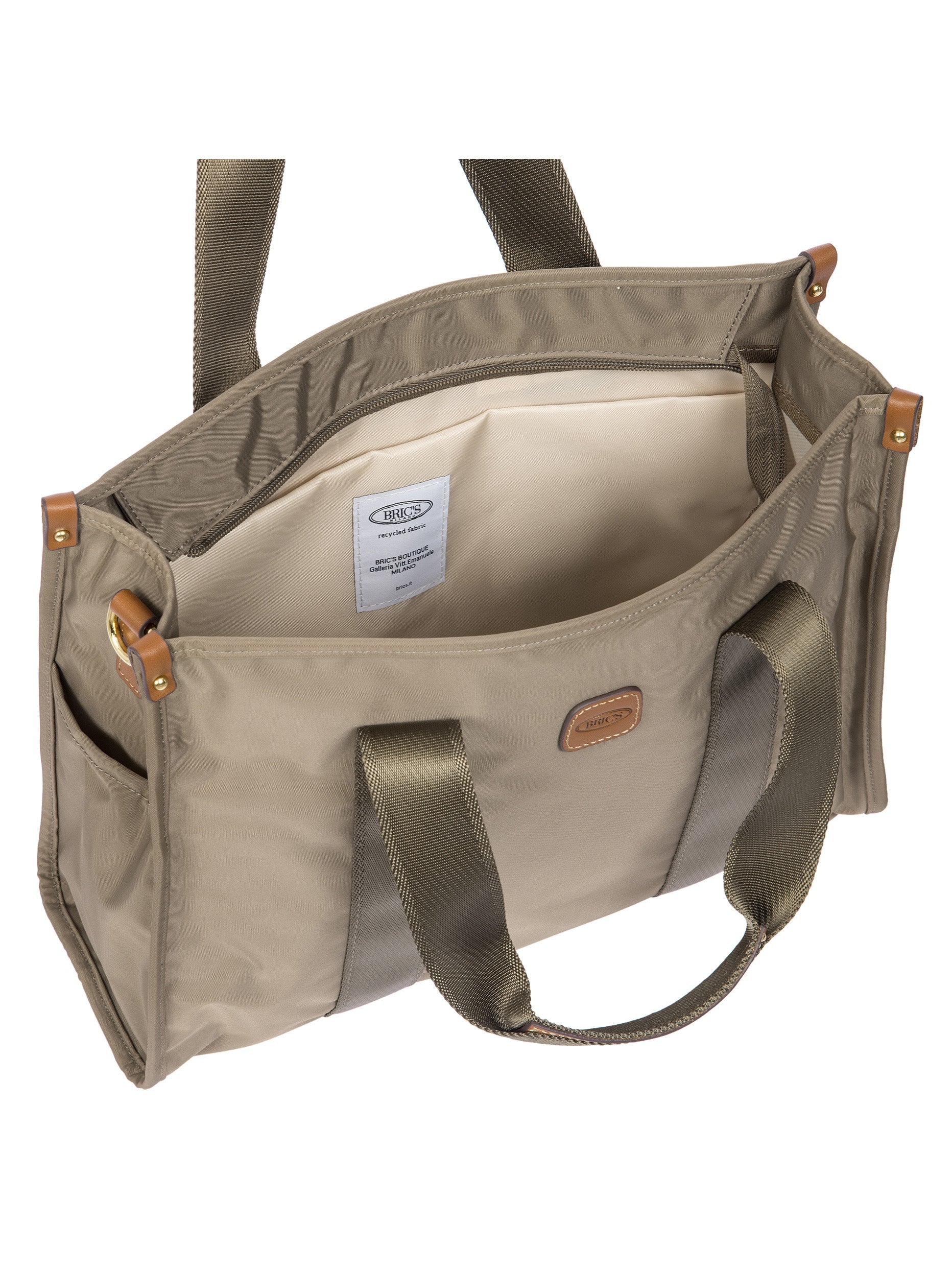 Le sac Opera de la collection X, qui allie espace et lignes épurées, est confectionné en tissu recyclé résistant à l'eau. Doté d'un fond renforcé, d'une poche rembourrée pour tablette, de deux anses et d'une bandoulière amovible, ce sac est à la fois fonctionnel et élégant. Sa fermeture à charnière offre une sécurité accrue. Les lanières et les détails en cuir véritable, signature de Bric's, apportent une touche de sophistication à ce sac indispensable du quotidien.
