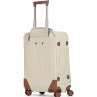 La valise trolley de cabine X-Collection est réalisée en nylon résistant , avec structure rigide et légère. L'ouverture principale est dotée d'une fermeture zip avec deux curseurs. Deux poches frontales zippées, des poches intérieures et des sangles pour une organisation optimale des espaces. Les roues pivotantes garantissent une mobilité aisée à 360°, et sont encastrées pour maximiser le volume interne du trolley. Équipée d'un porte-adresse intégré et d'anneaux pour l'installation du cadenas (vendu séparément). La poignée supérieure rembourrée, les quatre doubles roues avec roulements silencieux, les tubes robustes et stables en aluminium et la poignée ergonomique garantissent le confort d'utilisation. Ornée de détails en cuir véritable, marque de fabrique de Bric's, et détails avec logo.